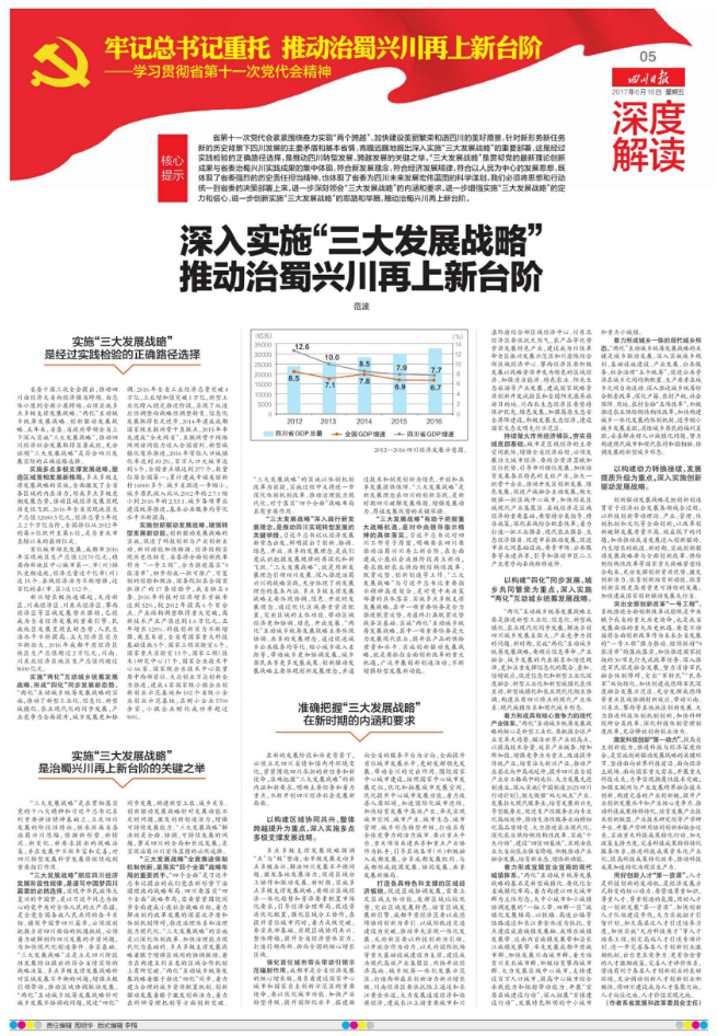 为了帮助全省广大党员干部更加准确、深刻地理解省第十一次党代会精神,四川省委宣传部策划组织,四川日报持续推出“深度解读”系列重磅文章,由省级有关部门负责同志和专家学者执笔,从多个角度,分不同专题,对党代会报告进行深度解读。