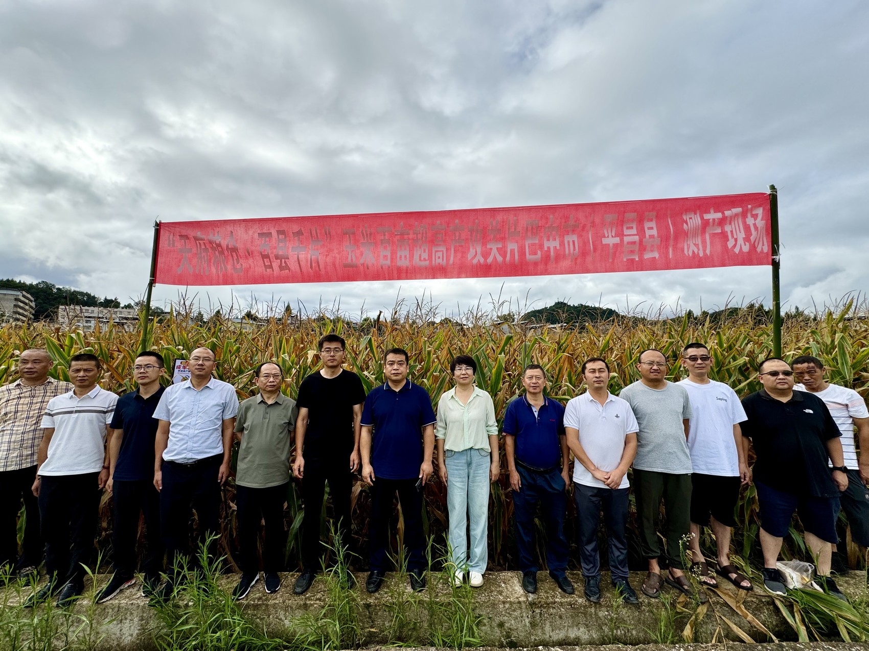 7月30日,在巴中市平昌县驷马镇文明村的玉米百亩超高产攻关示范片里,四川省农业农村厅组织四川农业大学、南充市农科院、广元市农科院、宜宾市农业农村局等单位相关专家,对该示范片玉米进行现场测产验收。