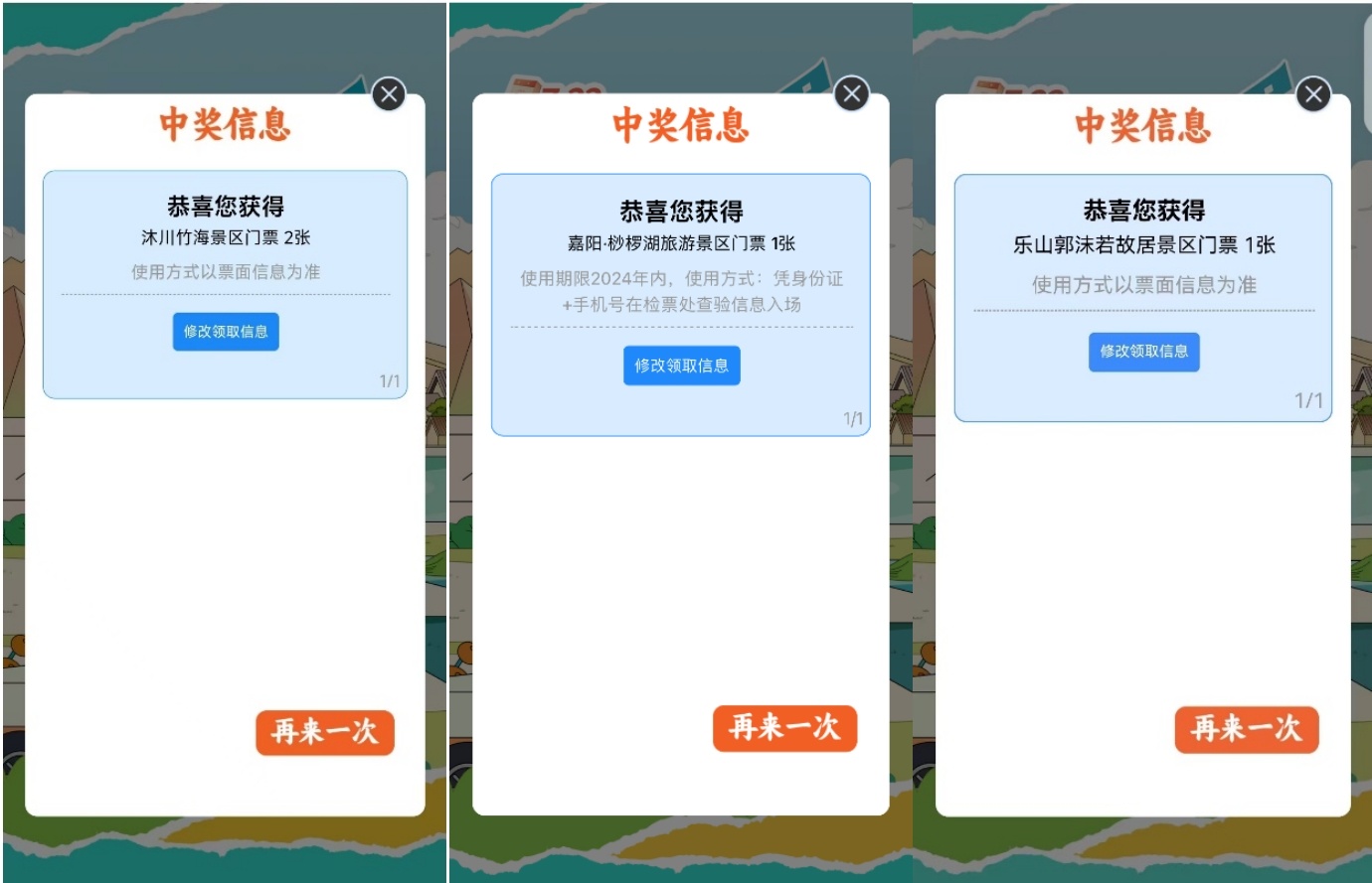 P.S.中奖用户可在川观新闻APP“暑期‘趣’玩”活动通道提供个人信息及地址,方便纸质票邮递哦。