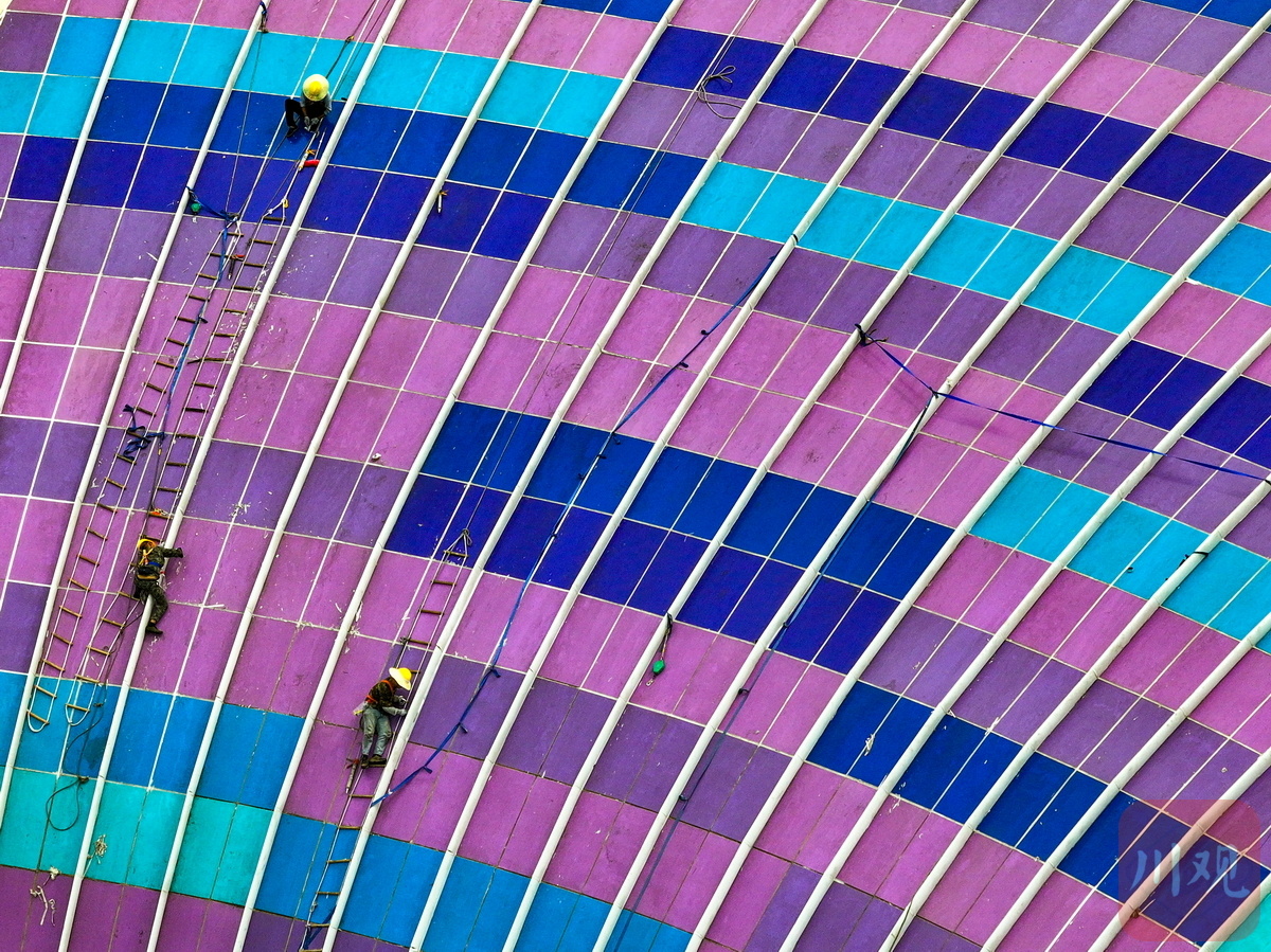 7月30日,位于雅安市雨城区的雅女公园建设项目现场,施工人员正在抓紧开展绿岛艺术中心主建筑等的相关收尾工作,恢复开放的女娲广场等地已有不少市民前往游玩打卡,另一侧的熊猫绿岛街区也正紧锣密鼓地开展开街前的相关准备工作。
