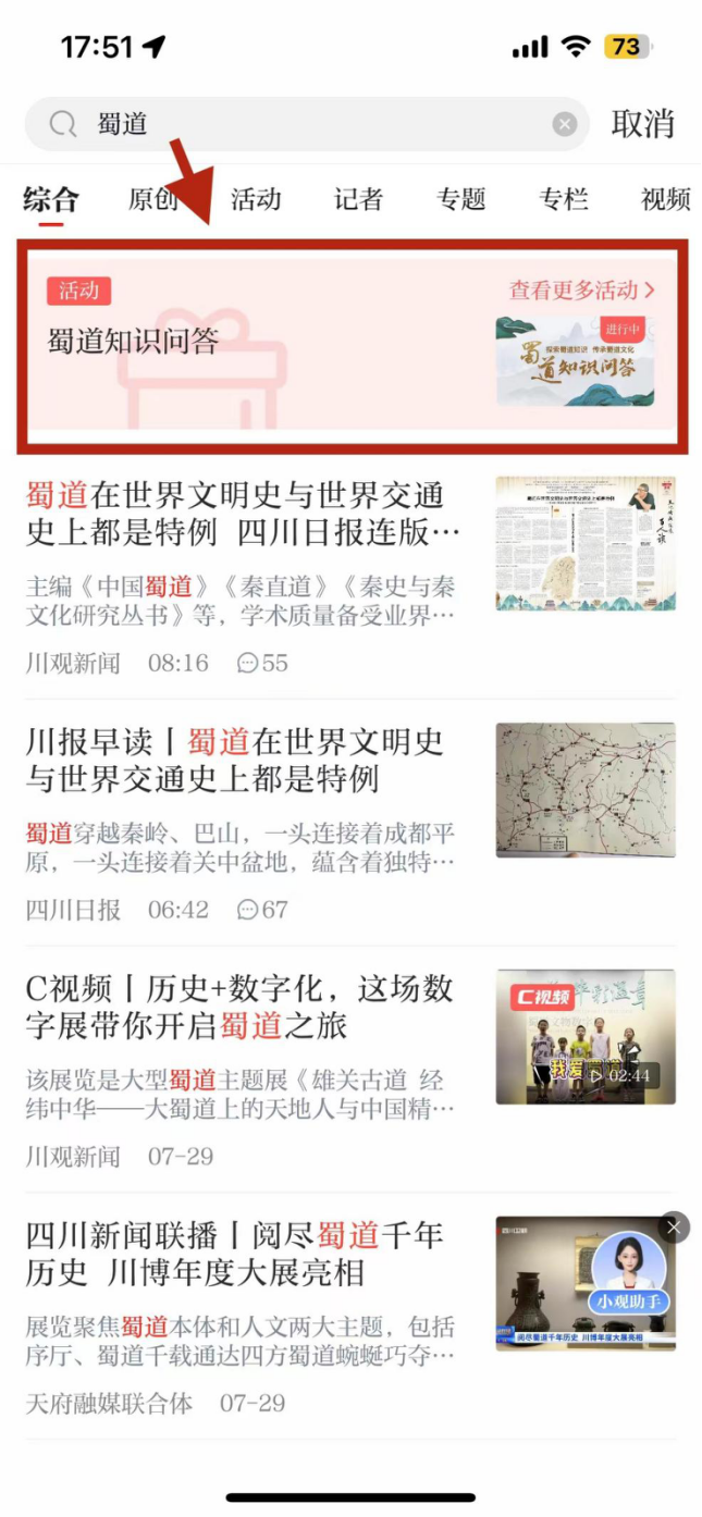 方式四:在川观新闻首页顶部搜索框输入:蜀道,点击活动链接即可参与。