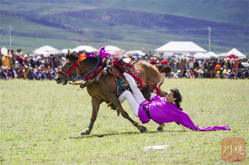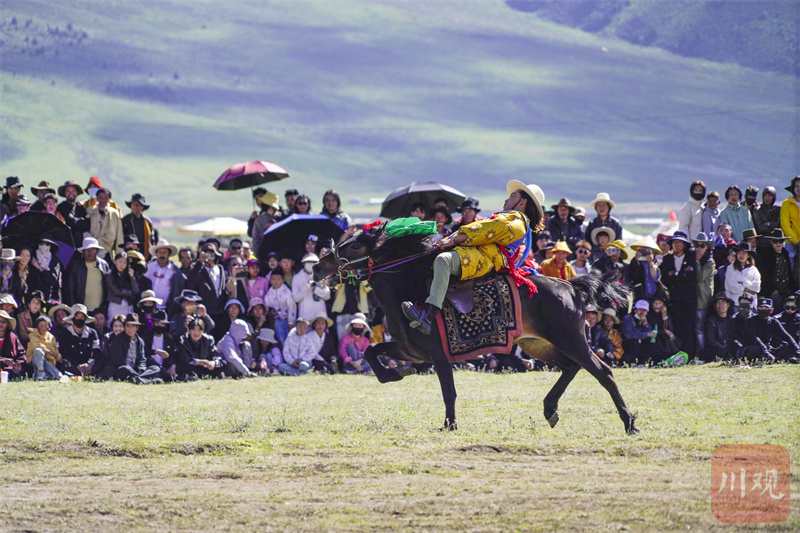 7月30日,“大地欢歌”2024年四川省乡村文化建设年—地方民俗活动理塘“八·一”赛马会开幕。作为本次赛马会的分项活动,场地赛马、马术表演、马匹交易、走马比赛给与会嘉宾和各地客商、游客带来了一场精彩绝伦的马会“全席”。(供图 理塘县委宣传部)