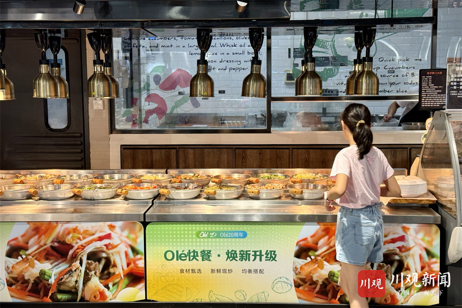 “来晚了,菜品就少了,工作日午餐都很火爆。”8月1日中午12时,记者来到位于成都太古里的Ole'精品超市,超市食堂用餐区已鲜有空位,在附近上班的刘女士告诉记者,“经常和同事过来吃午饭,20多道现炒菜品,荤素都有,称重计价,米饭和汤免费自助,而且还能定制团队简餐,真的感觉不错。”