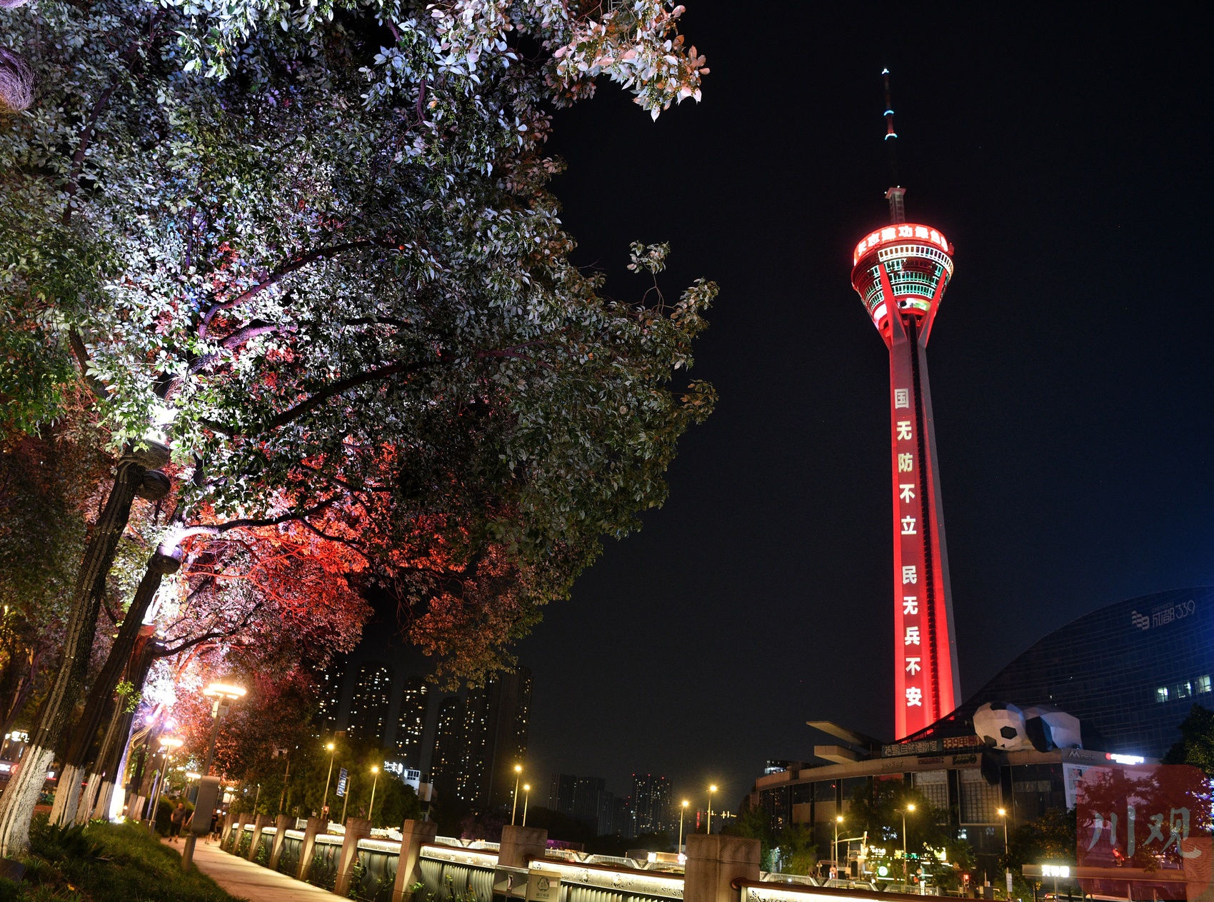 8月1日是中国人民解放军建军节,当晚20点20分,成都天府熊猫塔点亮了塔顶的彩灯,滚动展示着这样的标语:“传承川蜀红色基因,蓉城儿女报效祖国”、“青春热血献身国防,我们的军队是人民军队”。这些话语在夜空中闪耀。