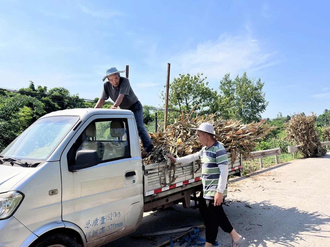 7月26日,刚收完玉米,岳池县西板镇金子沟村的村民又忙碌起来,大家将玉米秸秆打捆,整齐地堆码在公路两旁,等着统一收购。