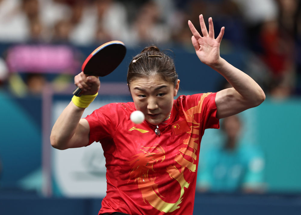 8月3日,在巴黎奥运会乒乓球女子单打决赛中,中国选手陈梦战胜队友孙颖莎,获得金牌。