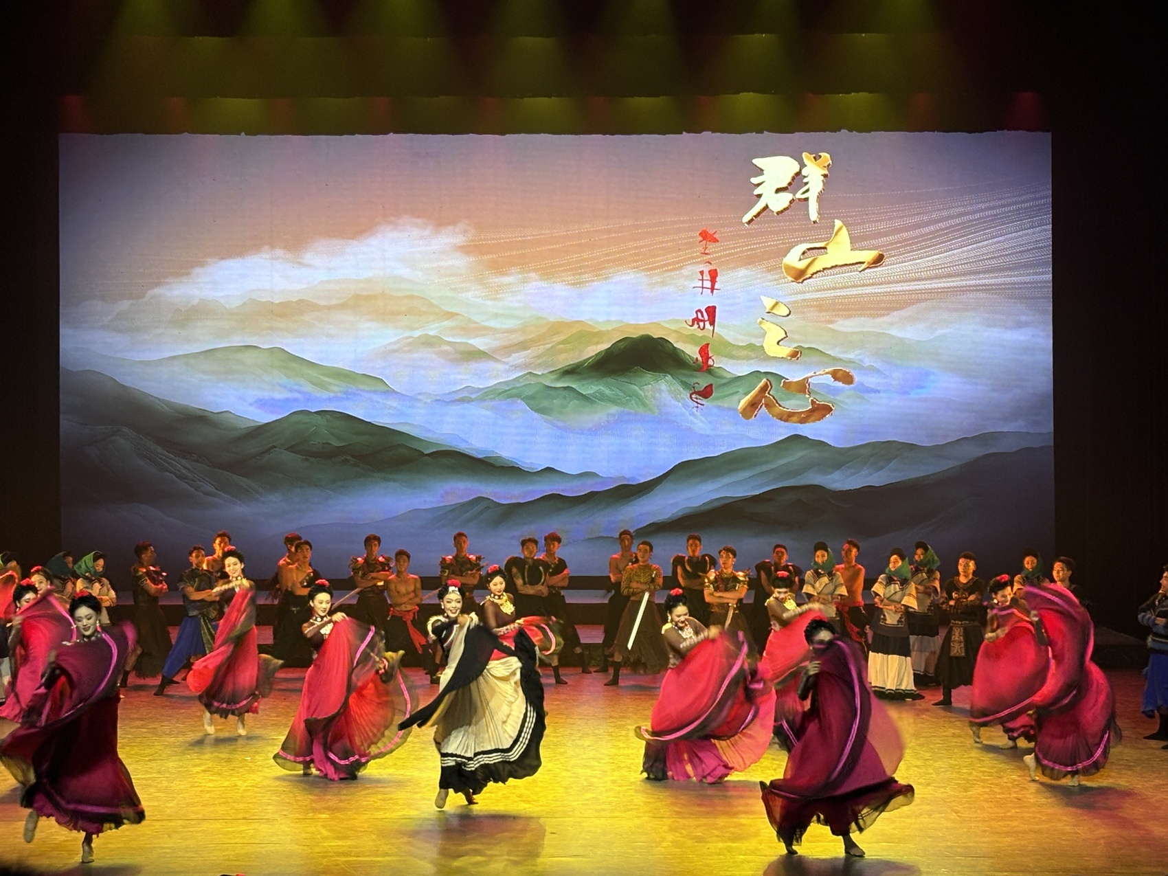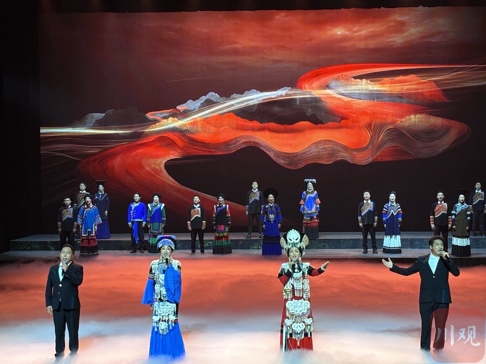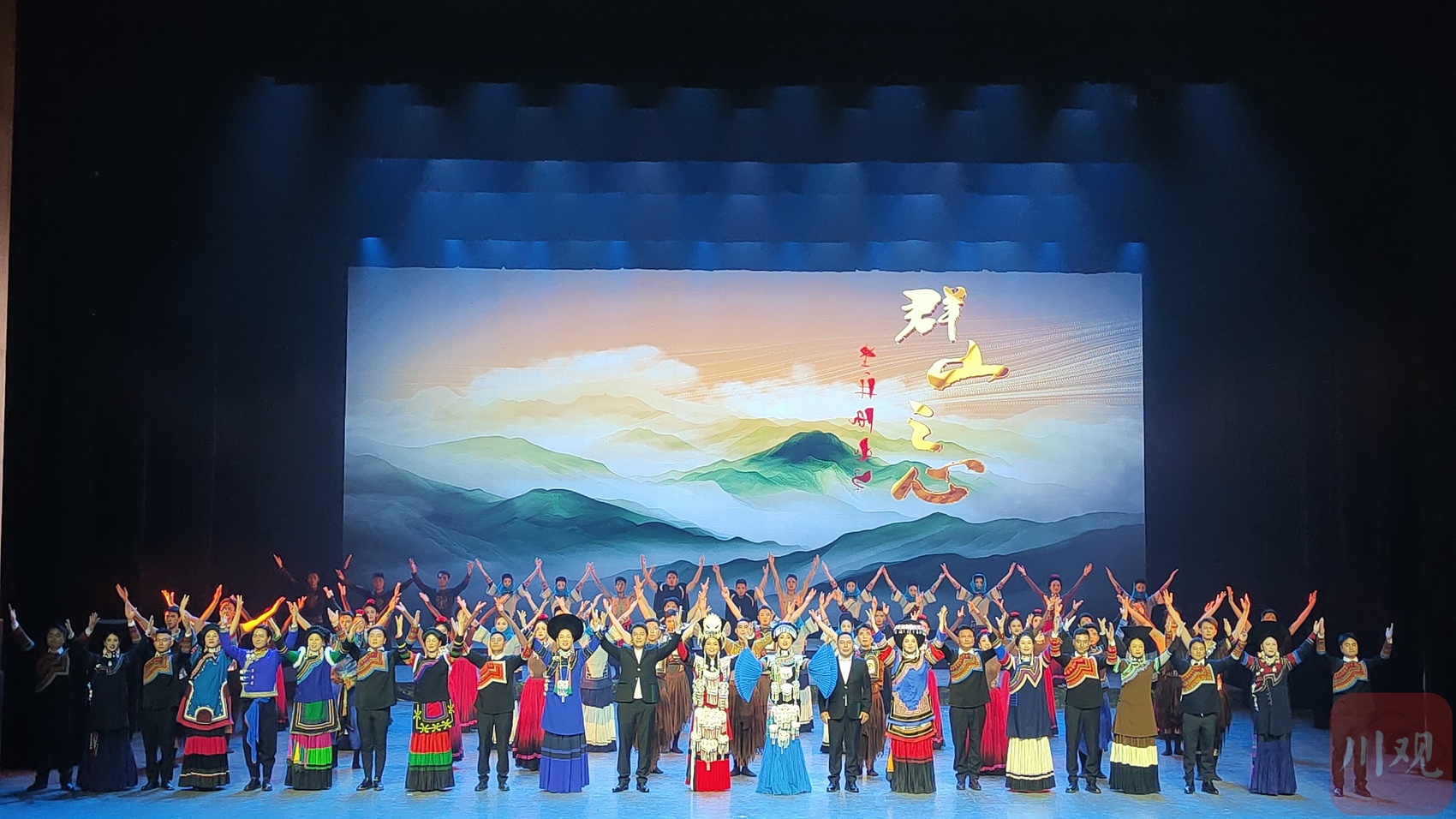 当晚的首场演出为凉山州歌舞团的《群山之心》。群山之心,是凉山各族儿女世代咏之蹈之的风物之美,是传统文化馈赠的热爱与自信,是演出者对山水养育的感恩、对时代风貌的感触。一个多小时的节目,女子群舞《火塘母亲》、男子群舞《牧见草原》、男女合唱《我把歌声丢过山》……一个个精彩的节目轮番上演,演员们用精湛的技艺和饱满的热情,为现场观众带来一场极具特色的视听盛宴。