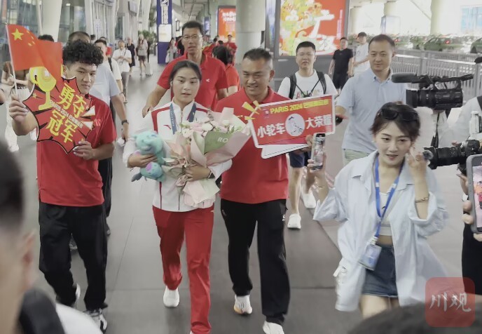 “来了!来了!”8月4日16时许,新晋奥运冠军邓雅文现身成都双流国际机场T2航站楼到达层,迎接的人群瞬间爆发出热烈的掌声,并献上鲜花和拥抱,祝贺声不绝于耳。