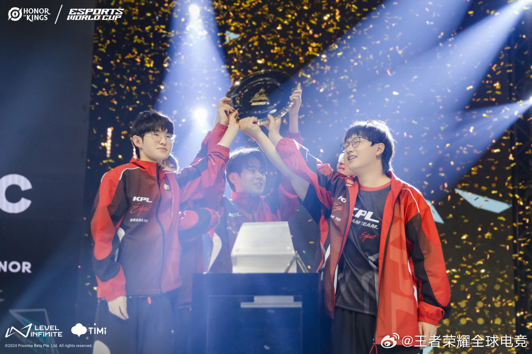 KPL梦之队夺冠图片。来自王者荣耀全球电竞官方微博