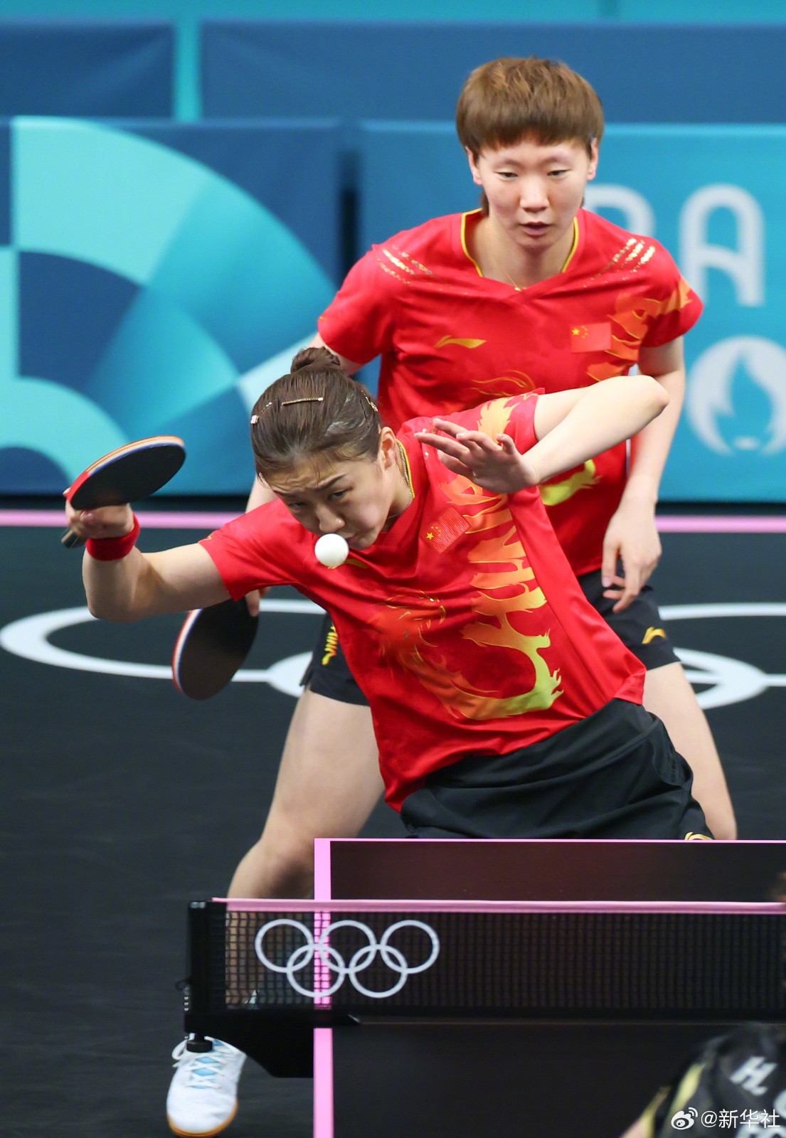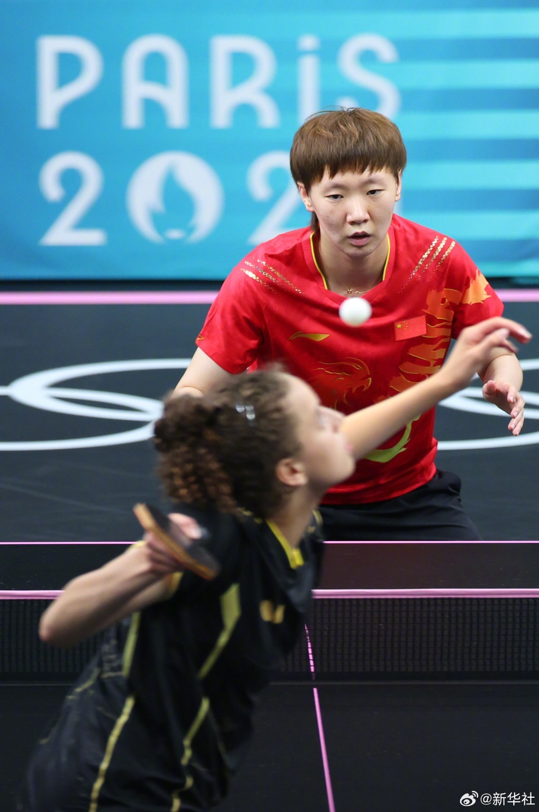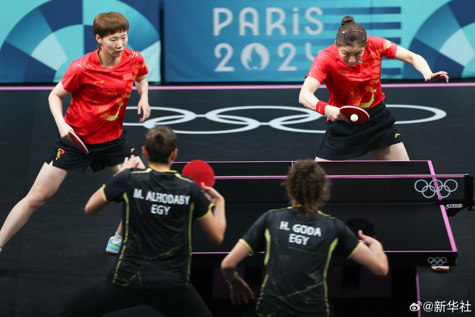 巴黎奥运会乒乓球女子团体赛首轮比赛中,由孙颖莎、陈梦、王曼昱、王艺迪(P卡:替补队员)组成的国乒女团,以3-0战胜埃及队成功晋级。(记者:岳冉冉 王东震 刘续)