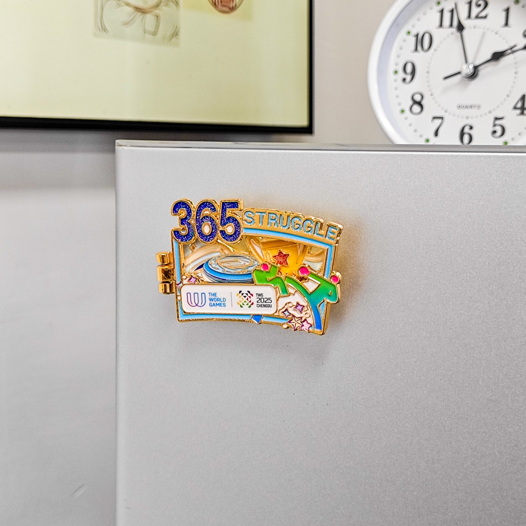 本次世运会与“TEAM CHINA中国国家队”的限量联名款徽章,结合了世运会与奥运会的共同项目——霹雳舞、射箭、攀岩的元素,以运动形态构成徽章图案,为中国国家队加油助威。
