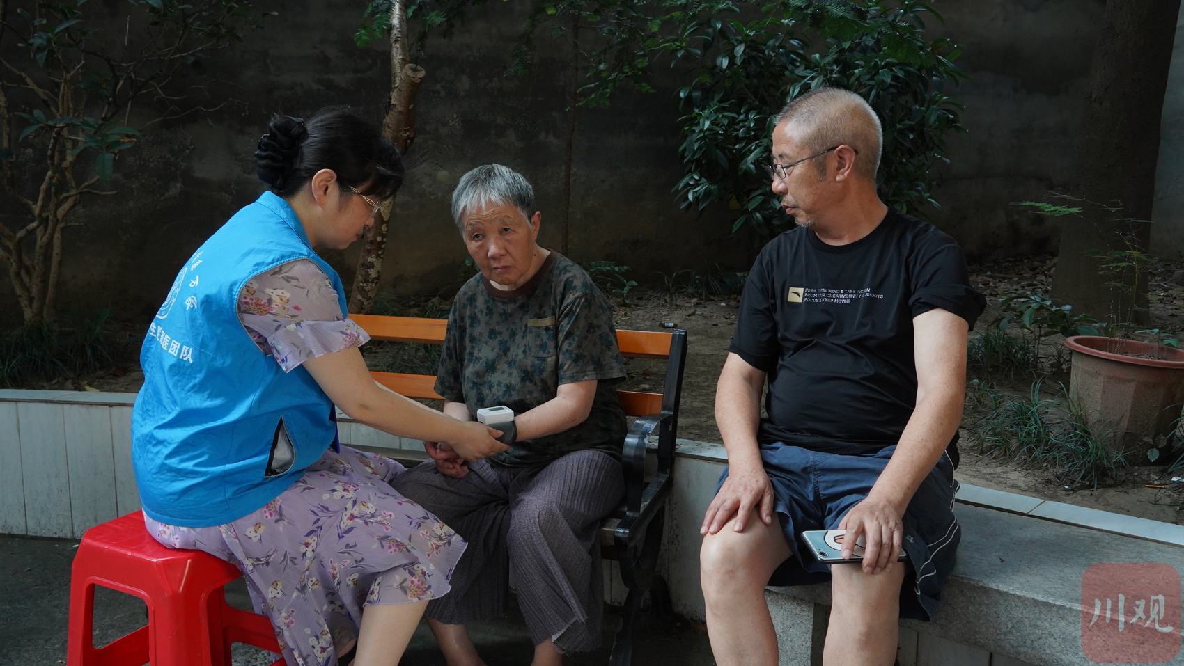 近日,宜宾江安县江安镇卫生院家庭医生服务团队成员顶着炎炎烈日,带着医疗检测设备走进剧专社区,为65岁以上行动不便的老人提供上门体检服务。在老人家中,家庭医生耐心细致地为老人测量血压、检测血糖,并详细询问老人的饮食、睡眠和日常用药情况。