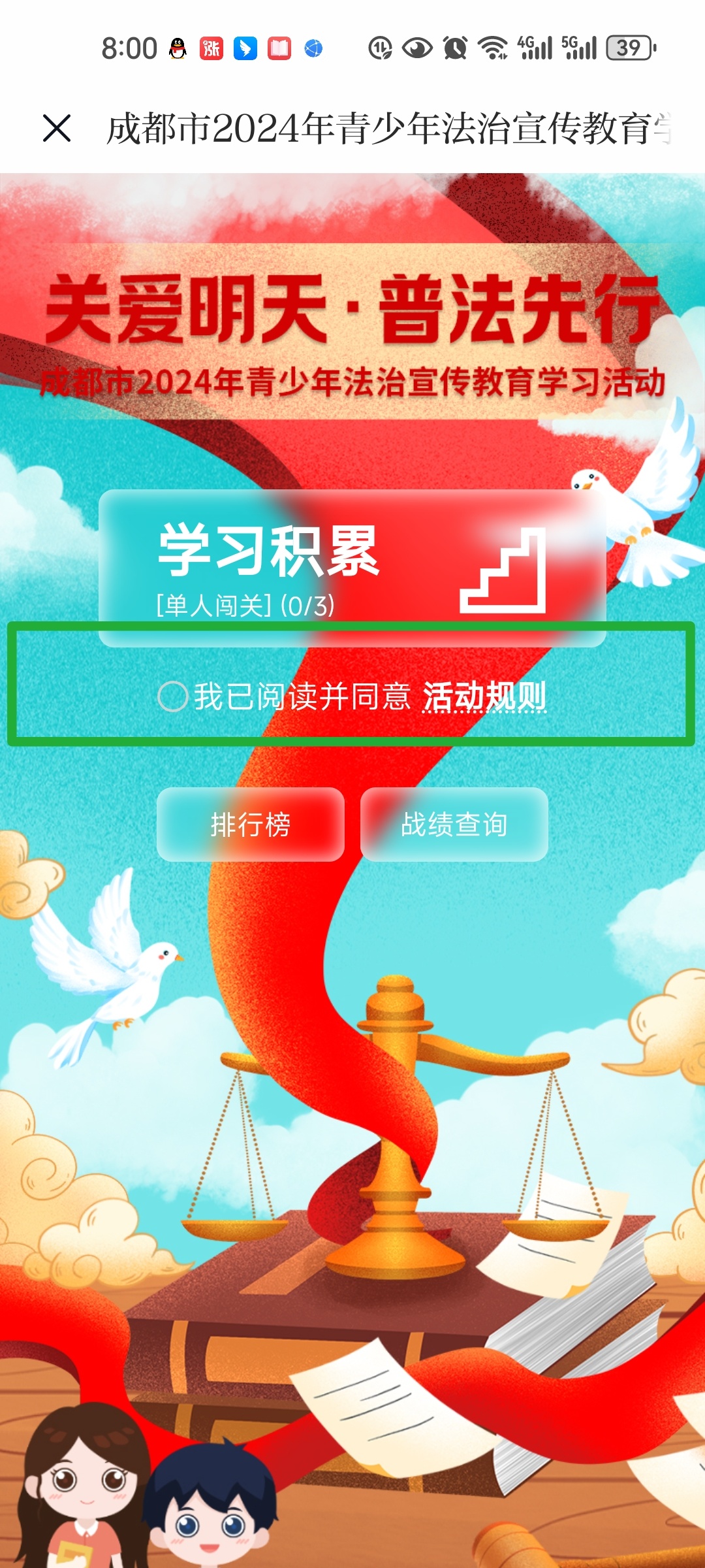 自8月1日,由成都市关心下一代工作委员会主办、川观新闻承办的“‘关爱明天·普法先行’——成都市2024年青少年法治宣传教育学习活动”在川观新闻APP和“四川日报”官方微信上线以来,广大网友积极参与,掀起了一轮学法普法的热潮。