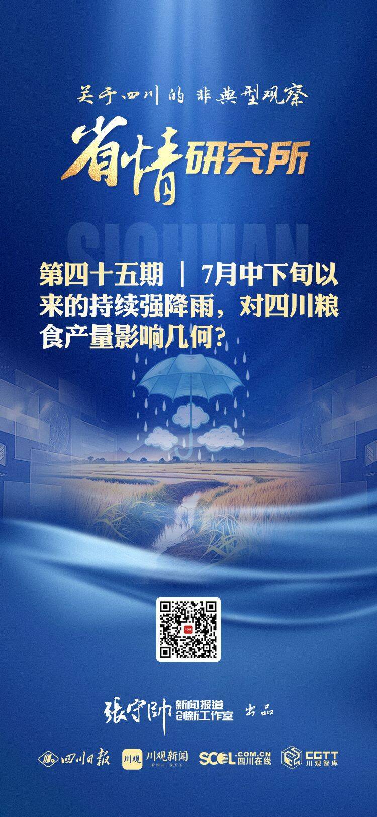 进入8月,四川从南自北陆续进入秋粮开镰阶段。多年来,以水稻和玉米为代表的秋粮,占全省粮食产量八成以上,是四川粮食生产不折不扣的“主力军”。7月中下旬起,四川大部先后在秋粮产量形成的关键期经历了五次强降雨过程。持续强降雨,对于四川秋粮产量影响几何?