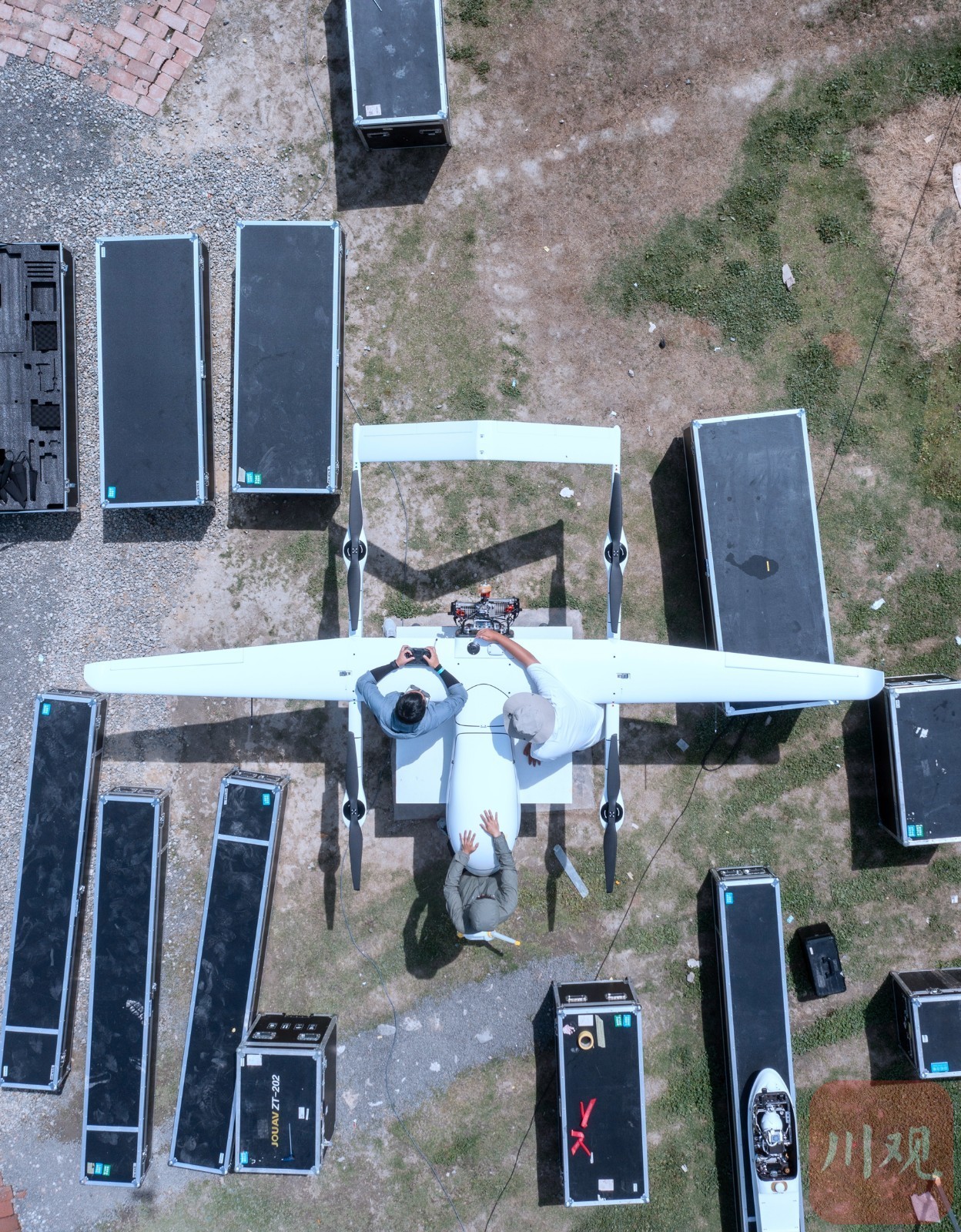 6月25日,技术人员在彭州市国家级民用无人驾驶航空试验基地对试飞无人机进行调试。