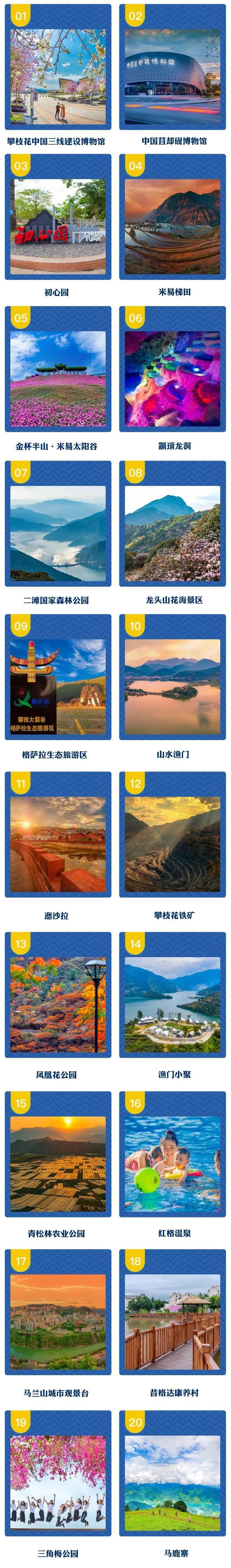 目前,攀枝花十大“网红打卡地”评选活动正在火热进行中,每人每日可投3票,可自由分配票数投给任意景点,投票将持续至12月23日,参与者还有机会获得攀枝花网红纪念品。角逐此次十大“网红打卡地”的景点,到底有哪些?一起来看看吧!