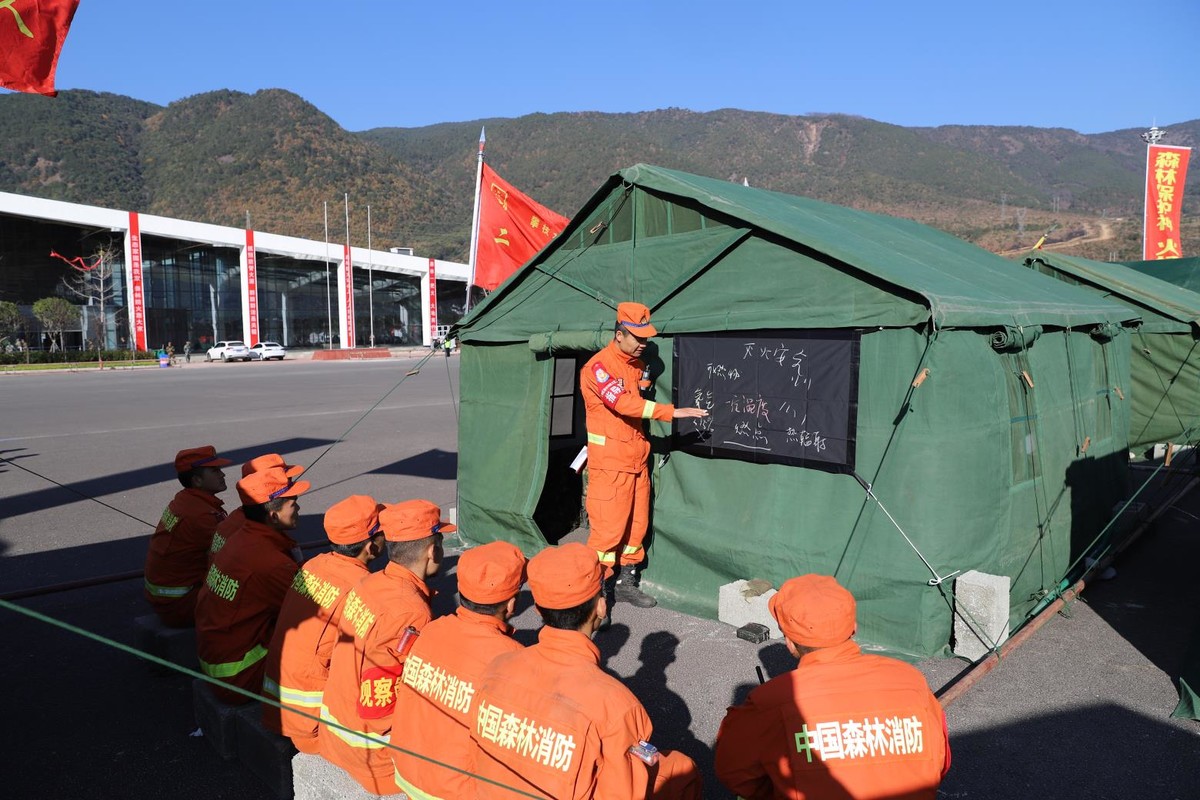 接到跨区增援命令后,攀枝花市森林消防支队迅速反应,连夜收拢人员,装载战备物资,做好了增援准备。12月15日经过4个小时摩托化行军,132名指战员于当日12时抵达演练区域并迅速投入演练筹备。