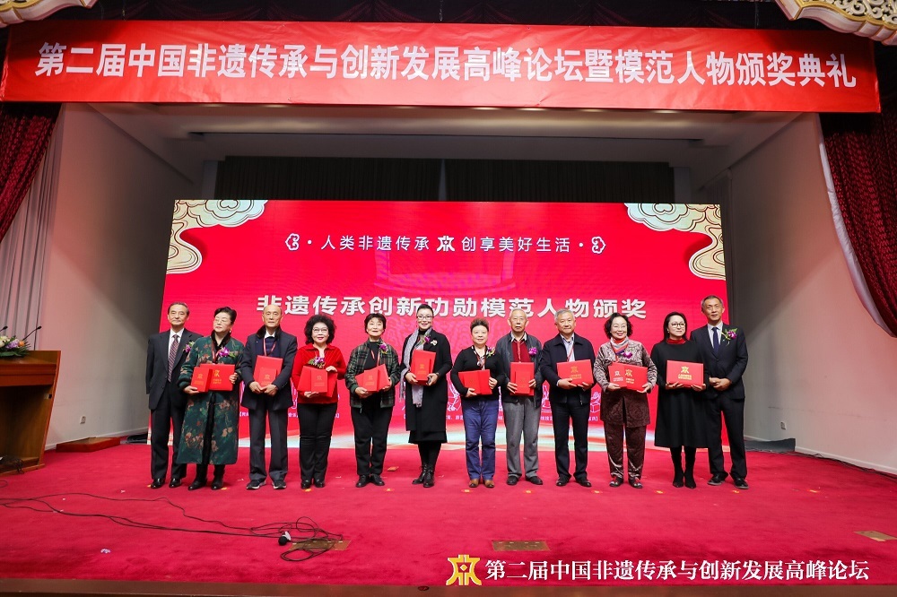 本届论坛以“人类非遗传承、创享美好生活”为主题,围绕昆曲、京剧、中国书法、古琴艺术等非物质文化遗产项目展开讨论,并颁发了三类奖项:“非遗传承新锐人物奖”、“非遗传承先锋模范人物奖”、“非遗传承功勋模范人物奖”。据了解,功勋奖是大会最高奖项,此次功勋奖获奖者均为国家级非遗权威性传承人和业界权威专家。 著名京剧演员、第四届戏剧梅花奖、1999年文华奖获得者王玉兰, 国家京剧院党委书记、院长 宋晨,中国艺术研究院研究员、戏曲研究所原所长、国家非物质文化遗产专家委员会委员王安奎 ,中国工艺美术大师、四川蜀绣博物馆馆长杨德全 ,昆曲非遗国家级传承人 、北方昆曲剧院院长杨凤一,著名京剧演员、1994年梅兰芳金奖获得者、中央戏剧学院京剧系主任、博士生导师郭跃进,中华文化促进会剪纸艺术委员会会长张树贤等以及李敏弟大师等被评委会认定为对中国非遗传承传播功勋卓越,因而同时获功勋奖大奖。