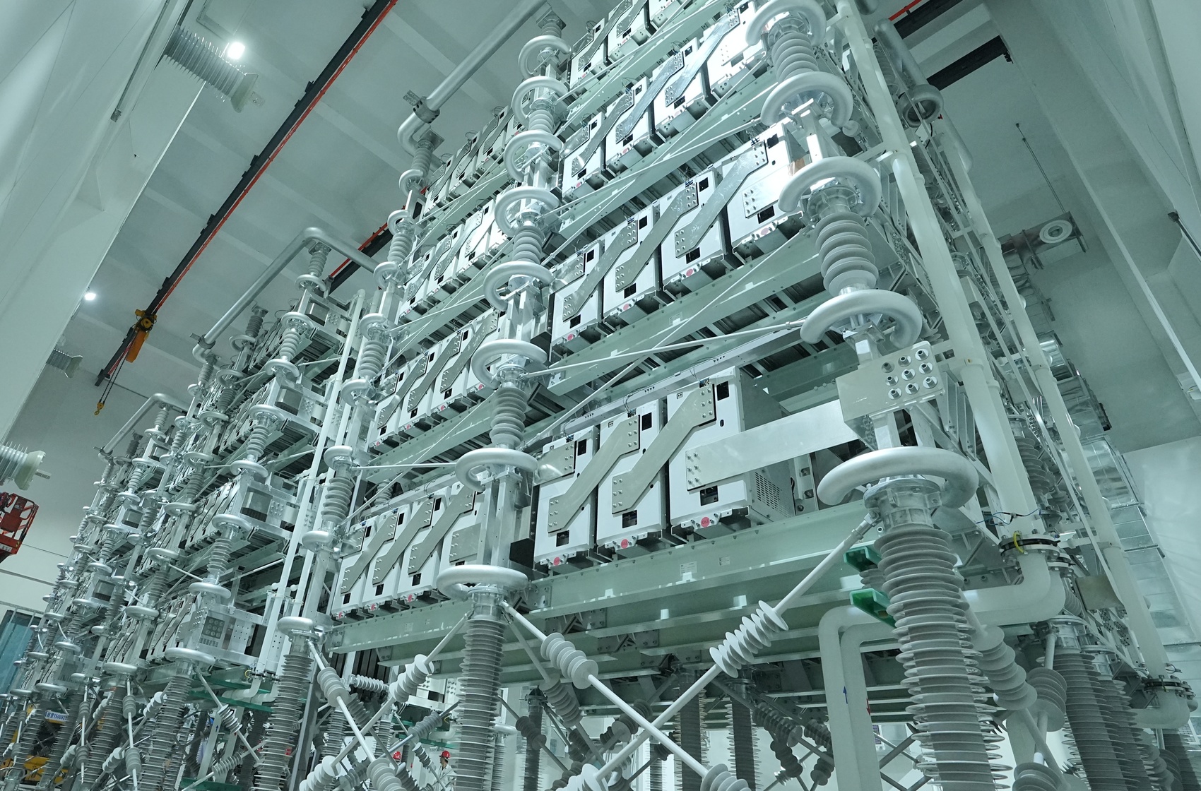 走进成都500千伏广都变电站,一个层高约3层楼的设备间里,“住”着3套SVG设备。就在两个多月前,它由阀塔、阀段、断路器等设备组装而成,“长”到了约6米高,浑身都塞满了换流阀、水冷系统等各种电气设备。经过近6个月的持续攻坚、30余天昼夜不停地连续奋战,6月29日,我国首套电网侧构网型SVG工程成功投运。