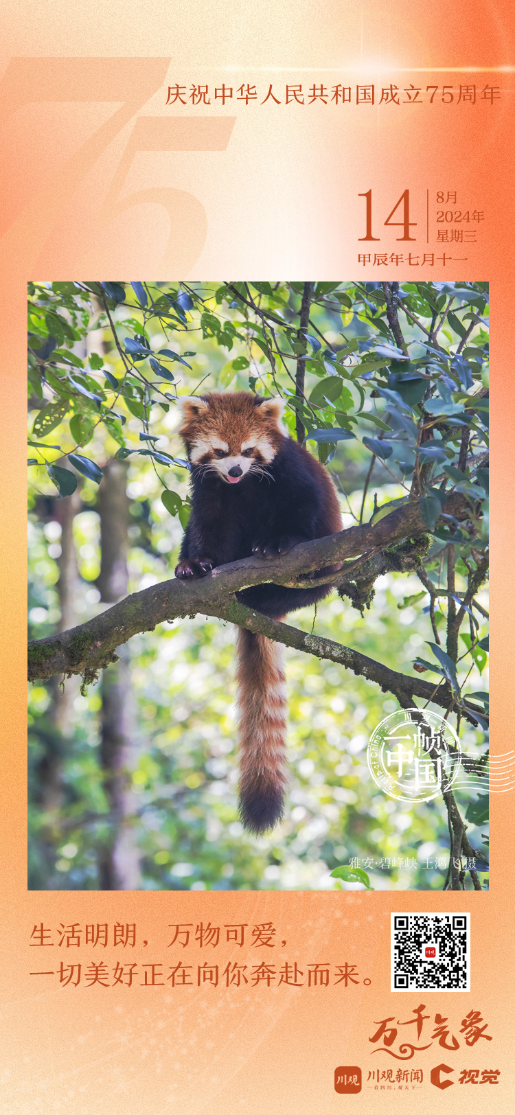 今天距离2024年国庆节还有48天。川观新闻《一帧中国》带你来到雅安市碧峰峡,与“宝藏萌物”小熊猫近距离接触。
