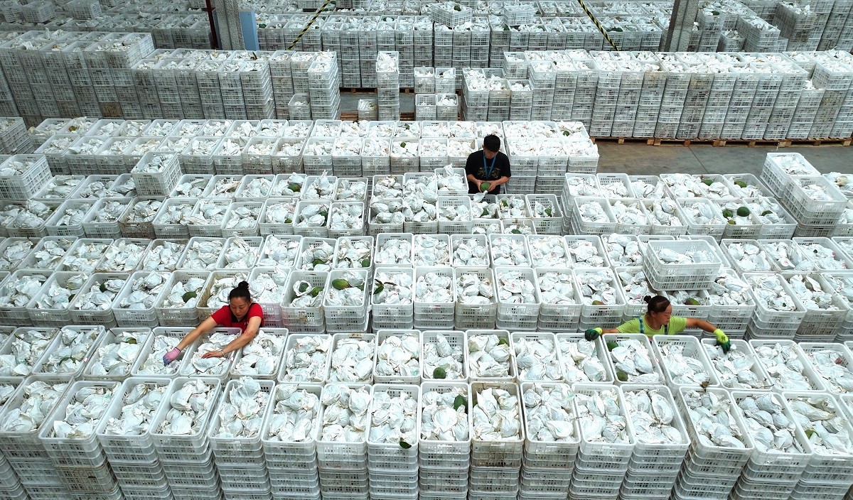 随后,行至以人工为主的包装线上,上百名工人分成若干组,套袋、装箱、封装、贴标……整个过程犹如一场默契的“接力赛”,简洁而高效,一箱箱装满芒果的小礼盒便会通过线上线下结合的全渠道销售模式,运送到大型商超和顾客手中了。