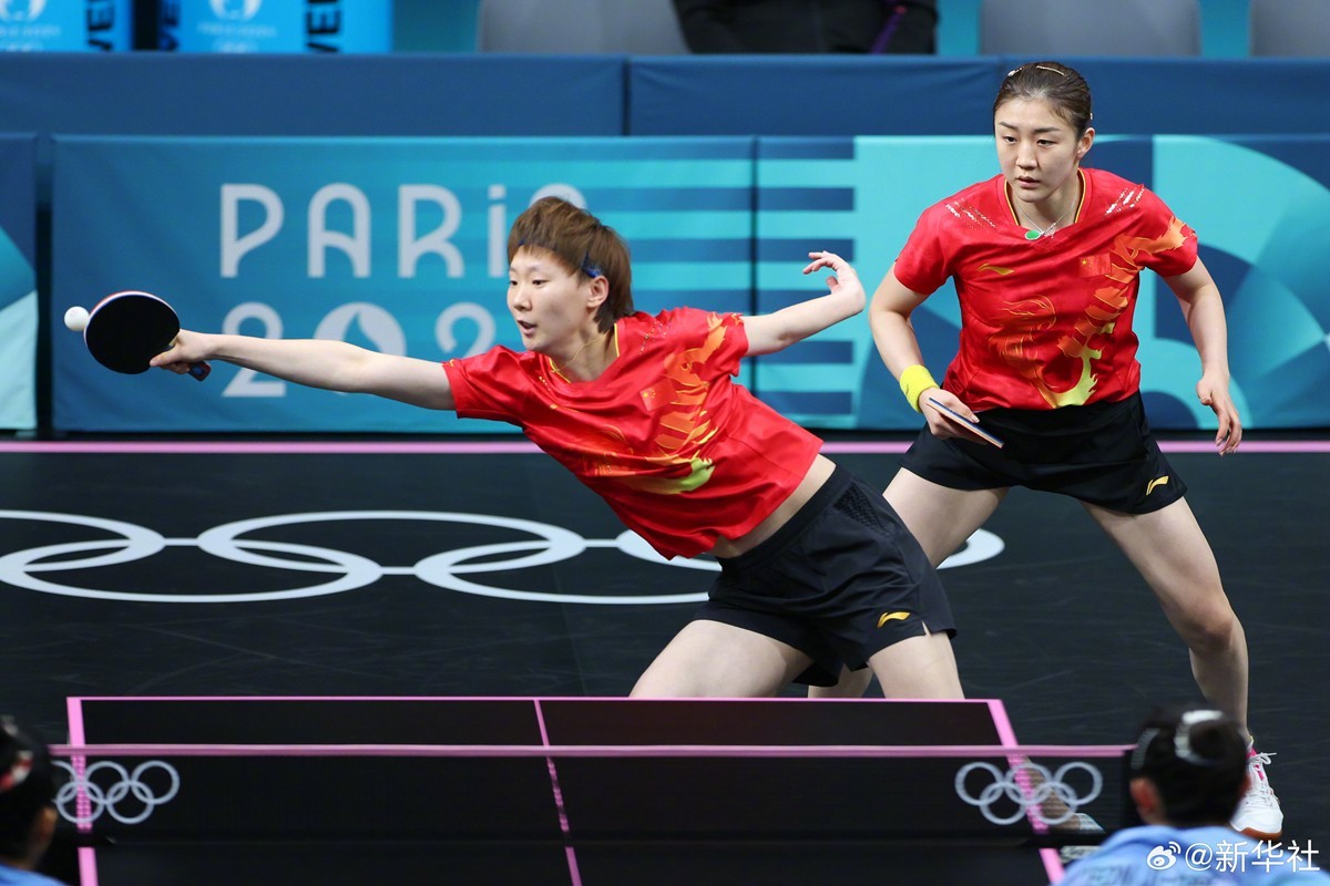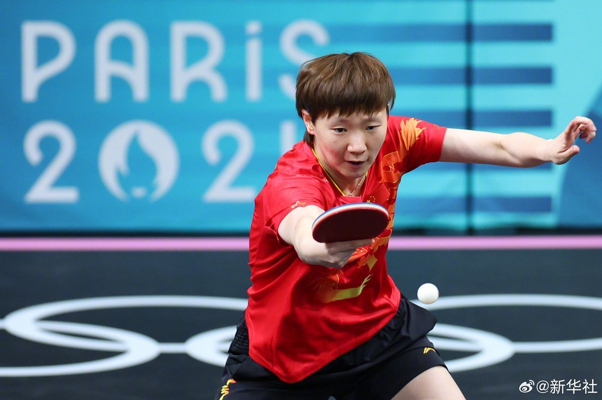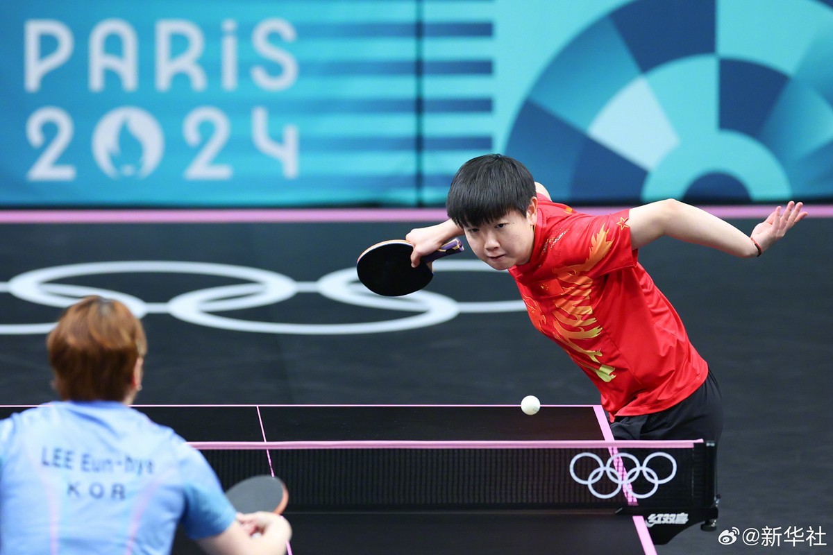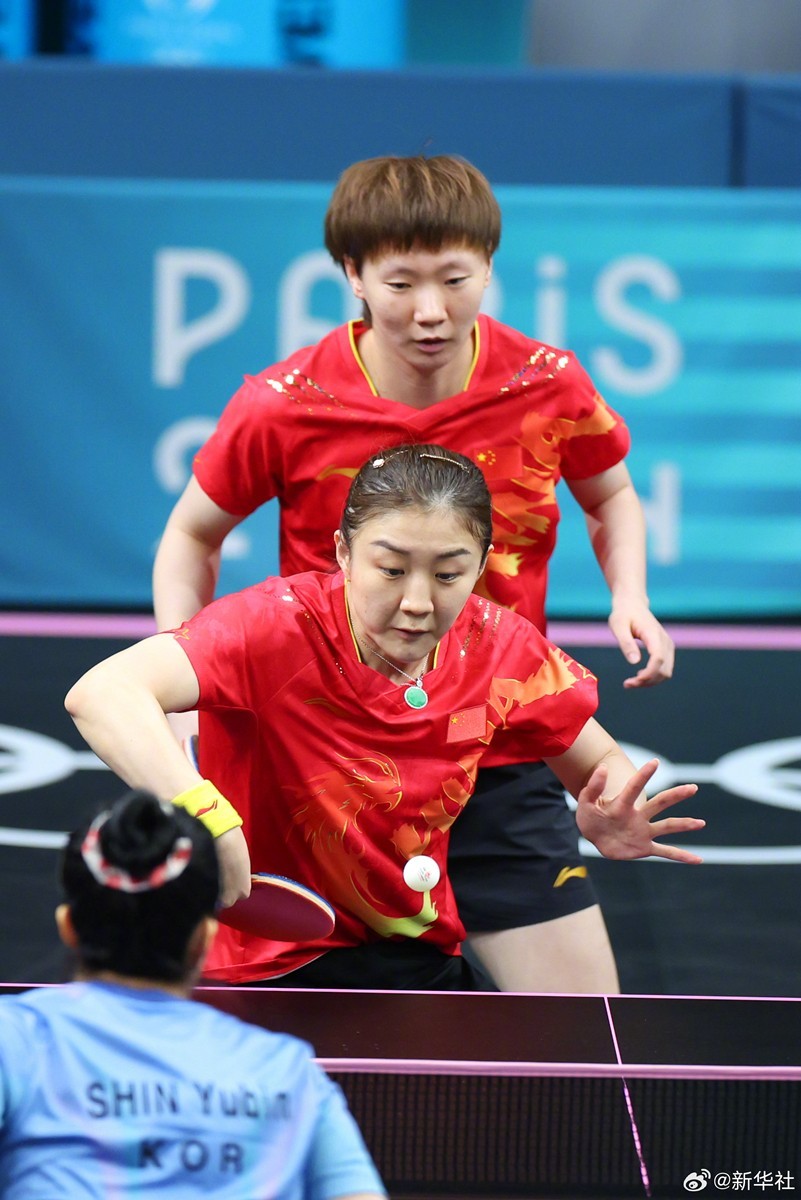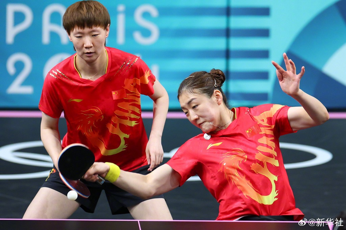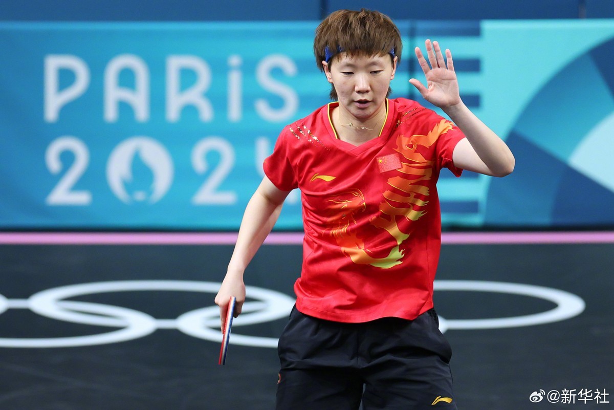 8月8日,巴黎奥运会乒乓球女团半决赛中,由孙颖莎 、 陈梦、王曼昱 、王艺迪 (P卡:替补队员)组成的国乒女队战胜韩国队,成功晋级决赛。(记者:岳冉冉 王东震 刘续)