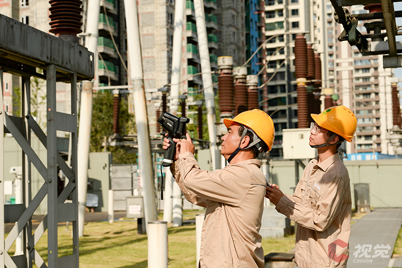 8月8日,四川省泸州市气温再次冲破40℃。国网泸州供电公司员工在110千伏冯嘴变电站开展设备红外测温。