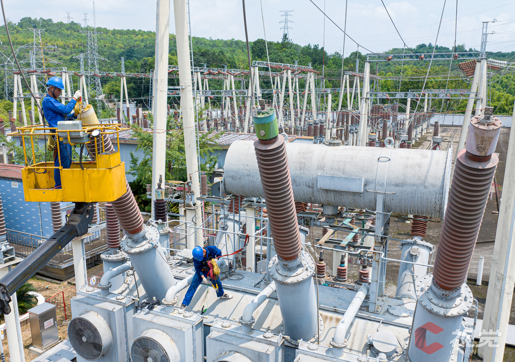 8月2日,国网绵阳供电公司变电检修中心员工冒高温在绵阳市220千伏大康变电站对1号主变及其附属设备进行试验和检修消缺工作。