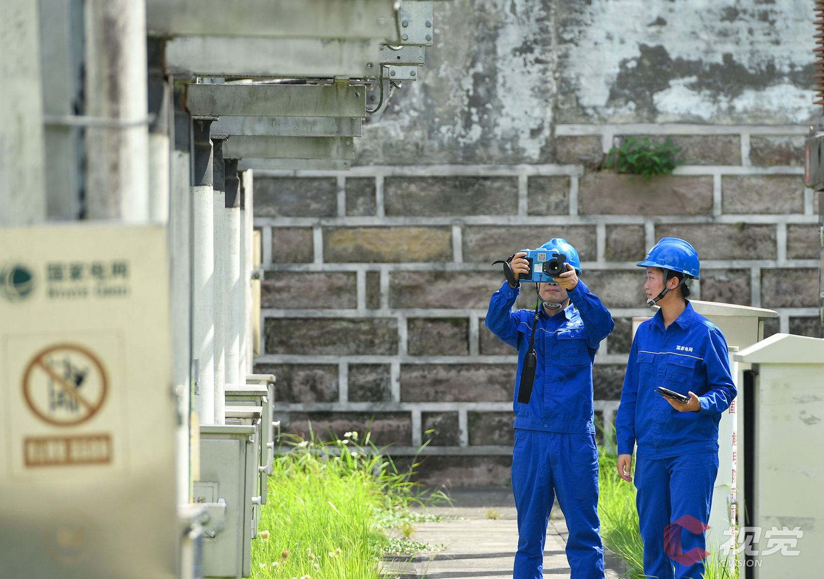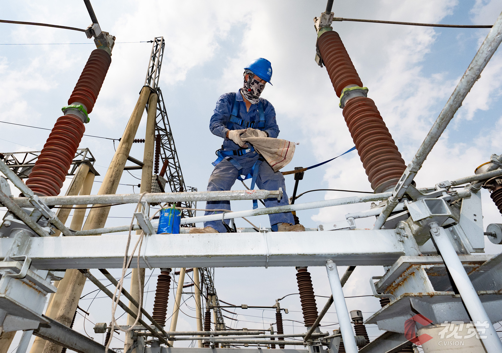 7月24日,在南充市蓬安县110千伏城南变电站,国网蓬安县供电公司变电运维人员顶着炎炎烈日对站内设备进行高温特巡。