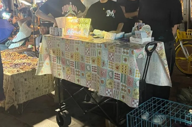 天津市和平区某商业街,几位年轻人在摆摊卖卡牌。新华社记者 徐思钰 摄