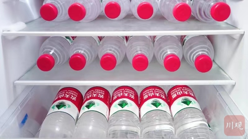 船山区工会驿站爱心冰柜里的矿泉水。遂宁观察 刘益静 摄