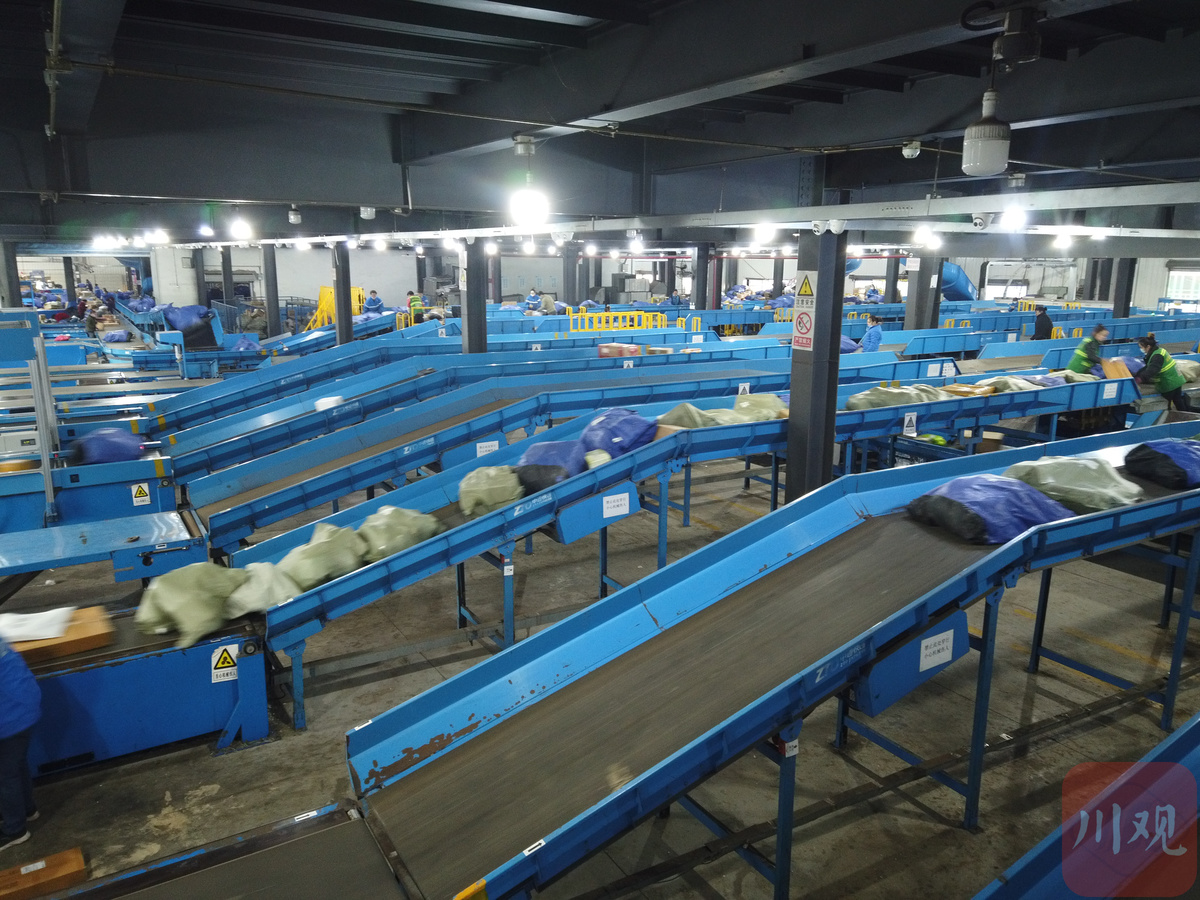 快递分拨中心好像一个复合式“行李托运处”,层层叠叠的运输履带按区域分拨大大小小的包裹。“最近的日分拨量是100万件,这是’双12’常态。”中通快递南充转运中心经理陈开明说,凌晨十二点到早上八九点钟,转运中心马力全开分拨货物,然后各路卡车把包裹运向川东北、川南地区12个地级市、64个网点,最后这些货物才由快递员投递到消费者手中。