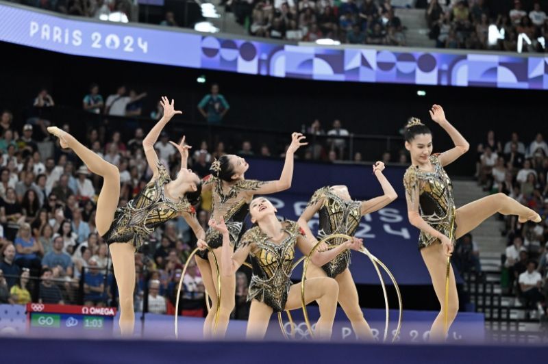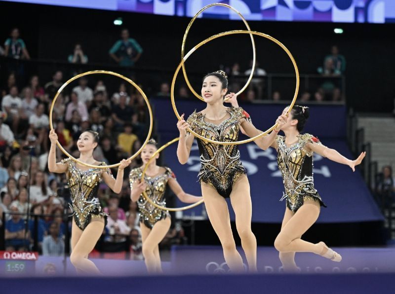 8月10日,在巴黎奥运会艺术体操集体全能比赛中,中国队获得冠军。