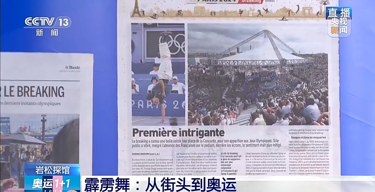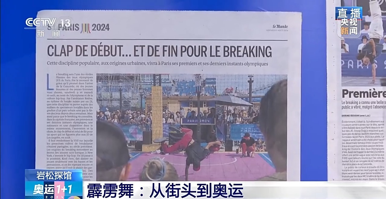 白岩松:我们来看一下法国当地两张报纸的报道。其中一份报纸描述道“有一种开始叫结束”,说的是霹雳舞在奥运中的命运。