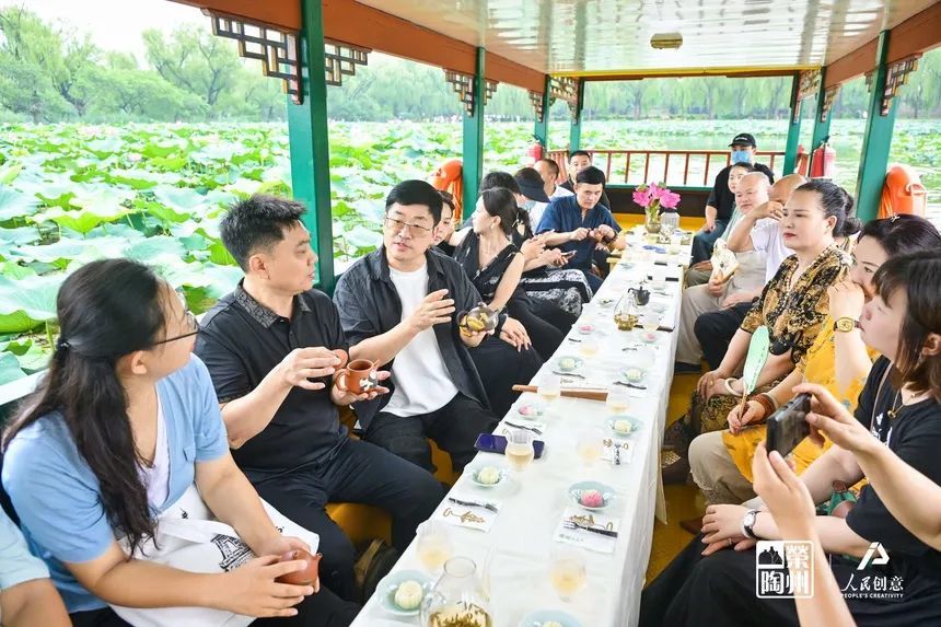 为丰富文化体验,感知非遗魅力。本次艺术沙龙设计了游船赏荷、品荷花窨茶、绘制漆扇等系列雅事体验,将中华文明的千年风雅融入手工技艺、荷韵茶香之中,呈现了一场非遗经典与古陶品鉴的“文化之旅”。当日发布的“东坡文人壶”,取自东坡的茶诗《汲江煎茶》,将超然脱俗的人生境界与禅茶契合,在杯盏之间体味乐观力量和豁达心境。“不染尘荷花壶”取自“花中君子”荷花的人文意境,通过艺术家舒展自如的写意技艺,将出淤泥而不染的荷跃然茶壶上,彰显“荷花有禅意,自古不染尘”的典雅韵味。