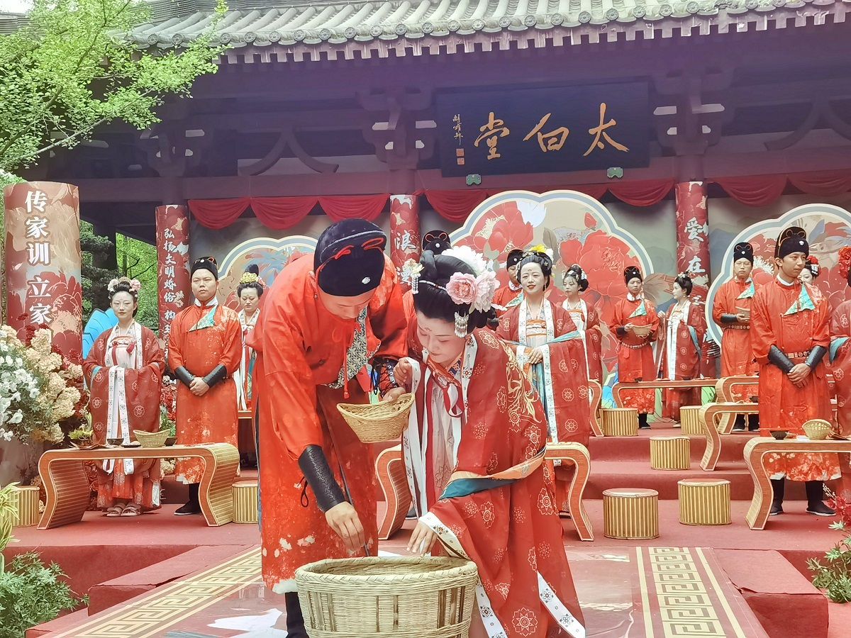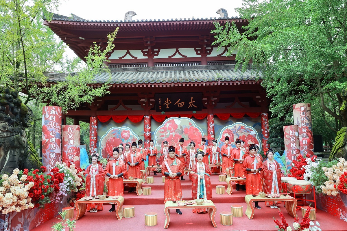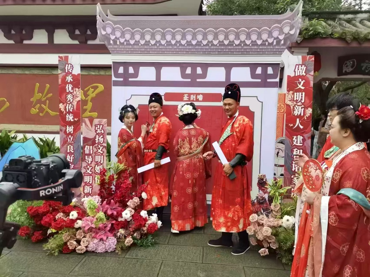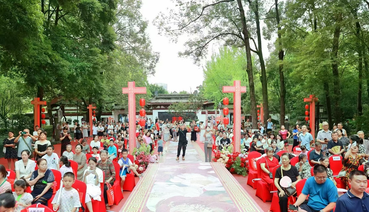 8月10日“七夕节”当天,“浪漫诗城·爱在江油”集体婚礼在江油市李白纪念馆举行,共有10对新人在浪漫诗城中沉浸式体验唐制婚典仪式,共同开启人生新篇章。