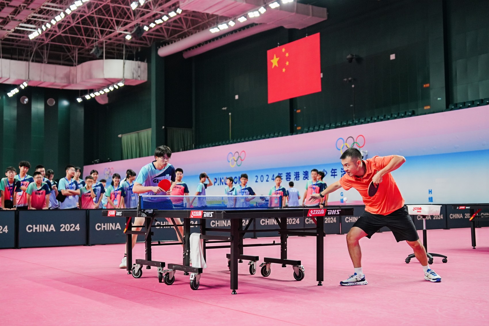 作为“国球”,乒乓球不仅承载着无数国人的荣耀与梦想,更是连接着不同地域、不同文化之间的桥梁。开幕式上,来自三地的青少年们以青年人的视角分享自己对“国球”的喜爱和自身成长经历。来自成都市第三十六中学校的冷嘉乐向港澳的同学们介绍,“在成都,乒乓球运动有着深厚的群众基础,无论是校园内还是社区里,都能看到乒乓球爱好者在运动。”来自香港乐善堂顾超文中学的王立琦和澳门培正中学的李迪朗两位同学则不约而同地表示,希望通过此次交流和训练,提升自己的技术,收获更多的友谊。