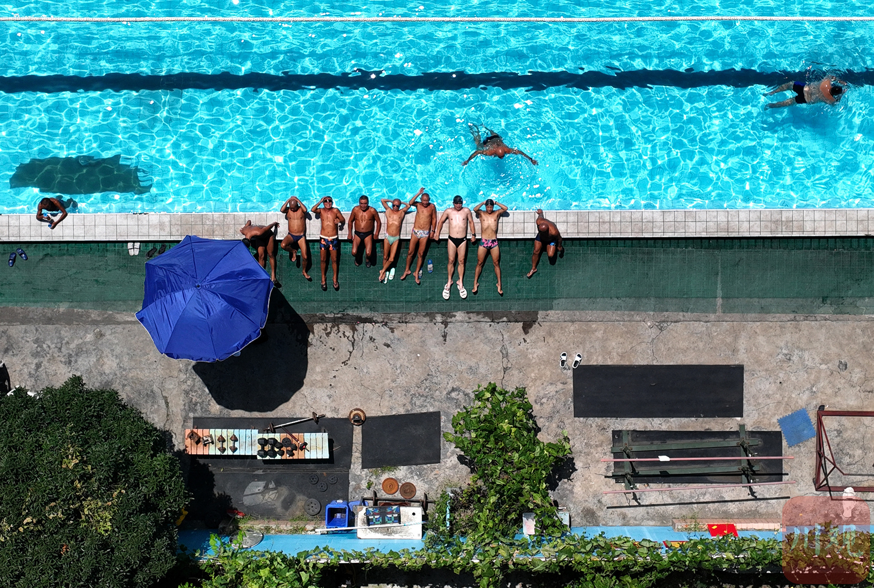 成都市民在泳池里躲避高温