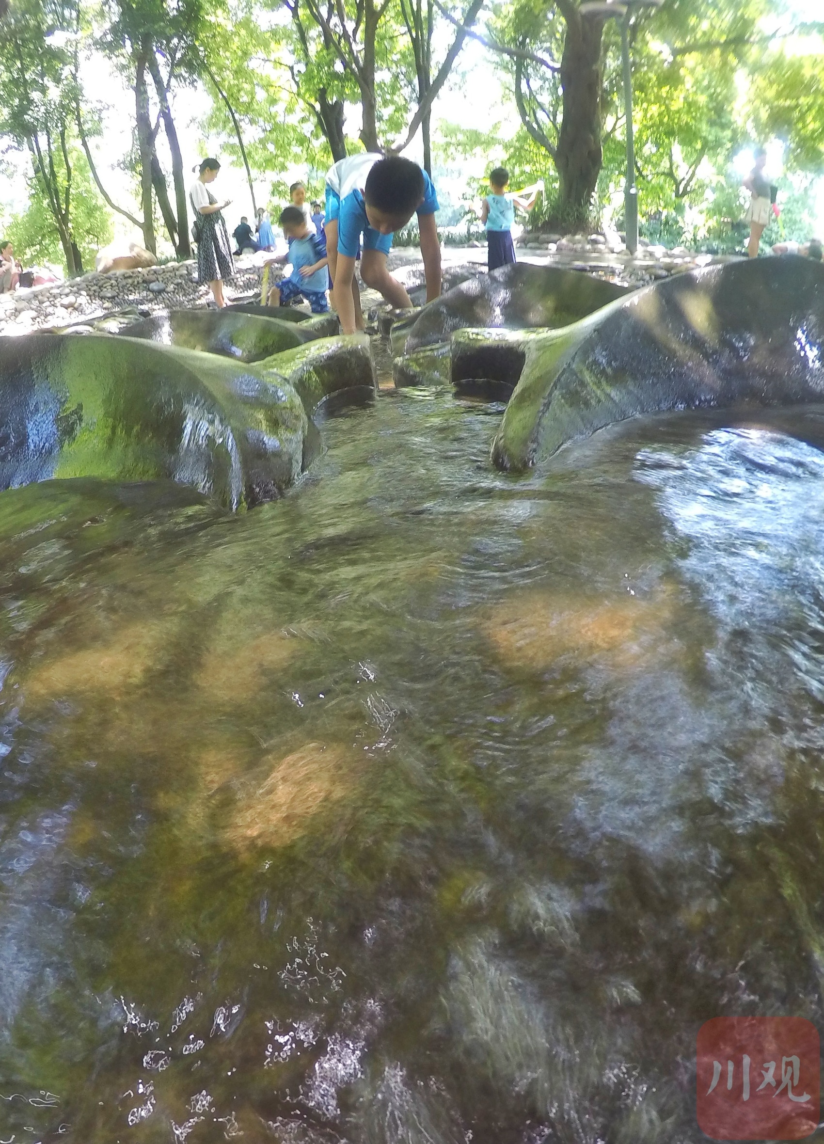 小朋友在成都市活水公园戏水纳凉