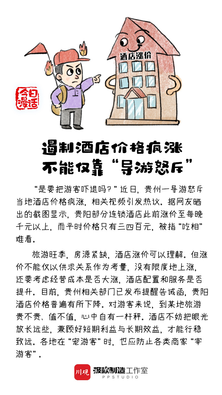 “是要把游客吓退吗?”近日,贵州一导游怒斥当地酒店价格疯涨,相关视频引发热议。假期旅游,你遇到过酒店价格疯涨吗?这事你怎么看?