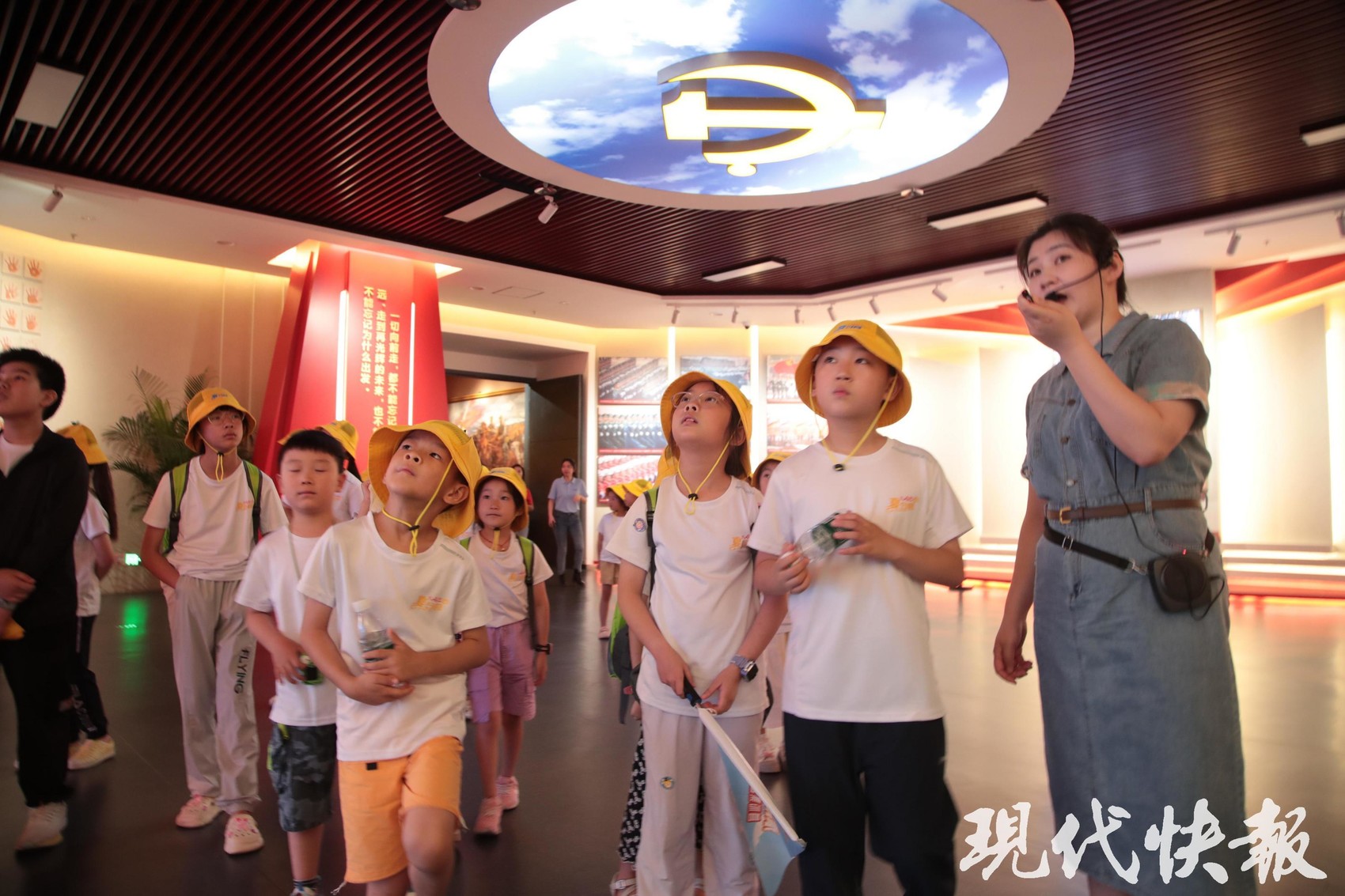 铁军魂,盐城红。新四军纪念馆主展馆正门上方,“N4A”臂章图案熠熠生辉。时值暑期,这里迎来了一拨又一拨的参观者。8月6日,来自首届长三角少年演说家(盐城赛区)集训营的小朋友们走进纪念馆。在这里,小朋友们对课本里的历史知识有了更立体的认知。