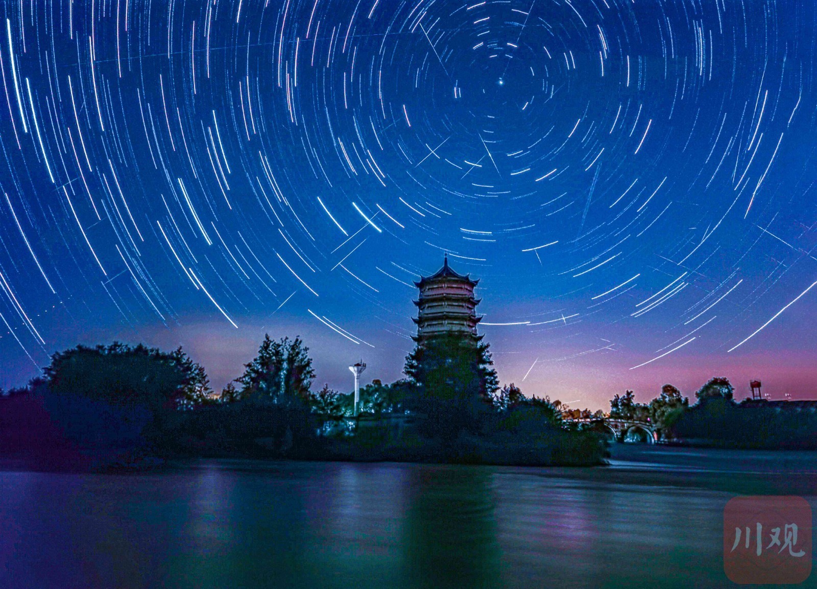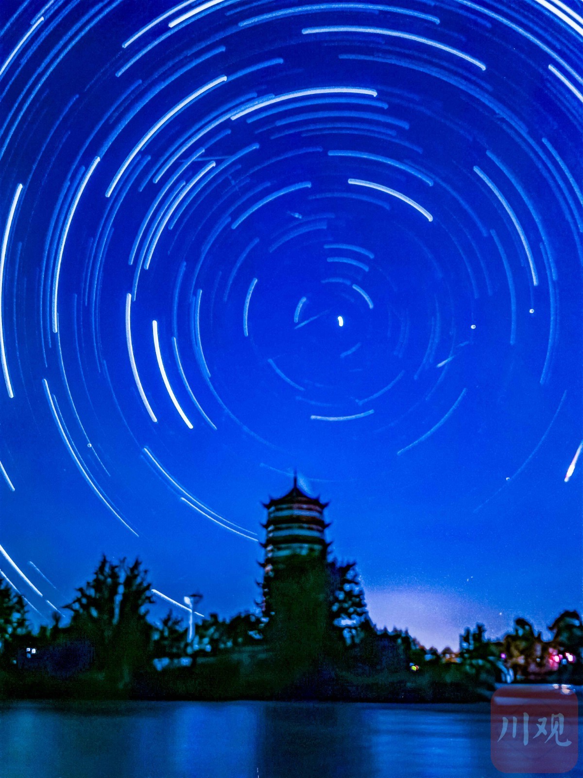 崇州元通古镇拍摄的星轨。 摄影师:杨武
