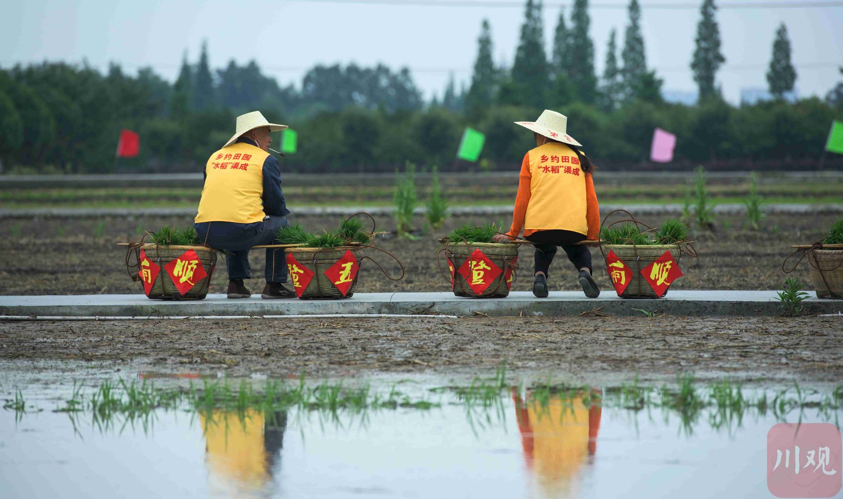 09 |温江区万春镇和林村举办的一年一度插秧节活动,挑秧员在田园小憩。