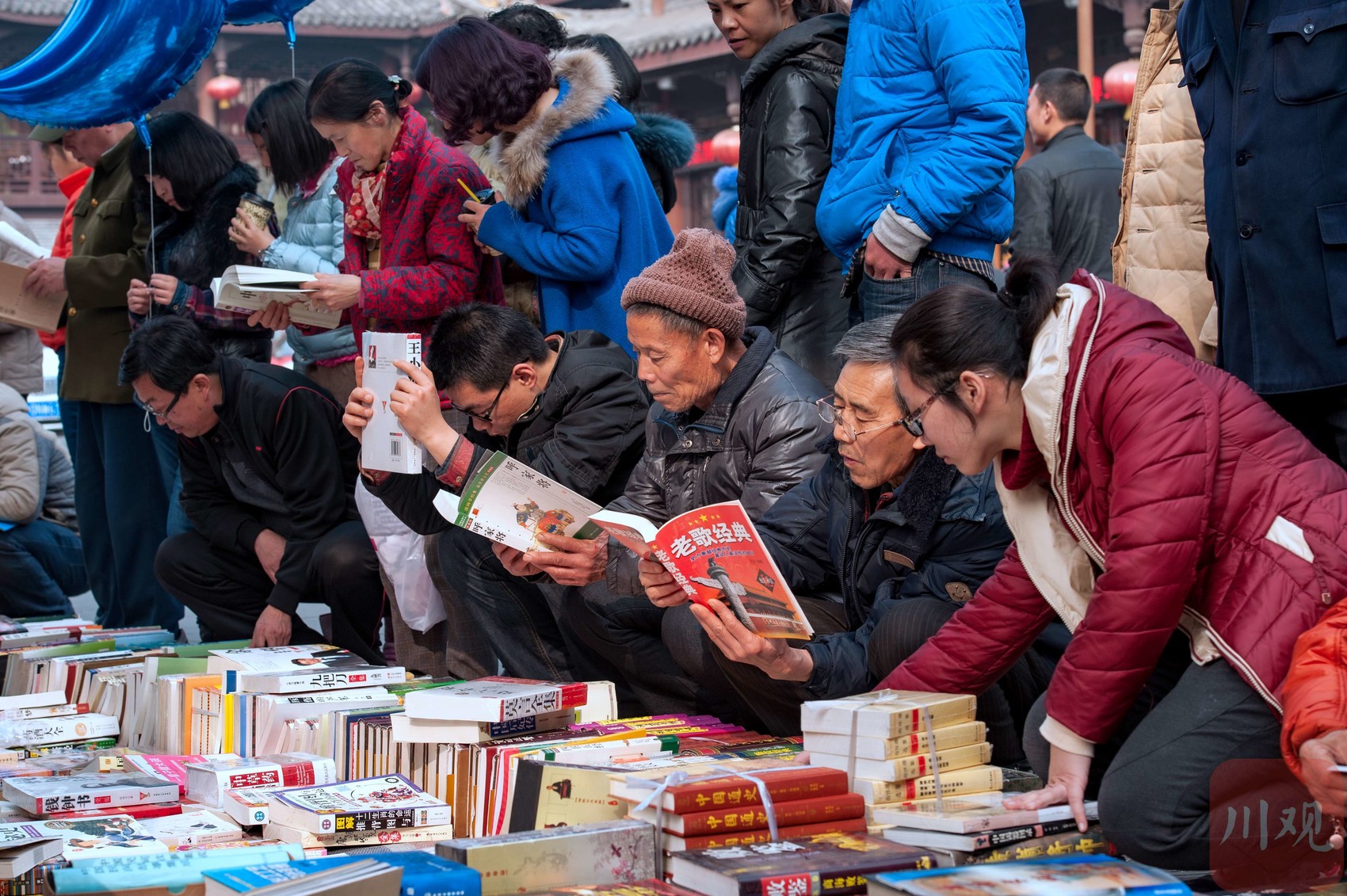 12 |温江区文庙广场地摊书市热闹非凡,吸引市民纷纷驻足。