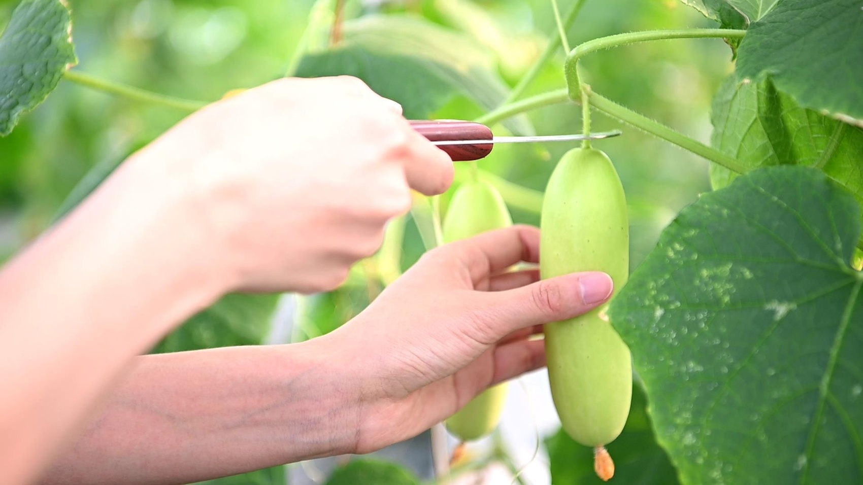 “我们采用无土栽培、水肥一体、生物防控等技术种植,让每个瓜都能充分享受阳光,长出的奶油小黄瓜个头圆润,瓜瓤脆甜。”农庄的技术骨干夏磊说。