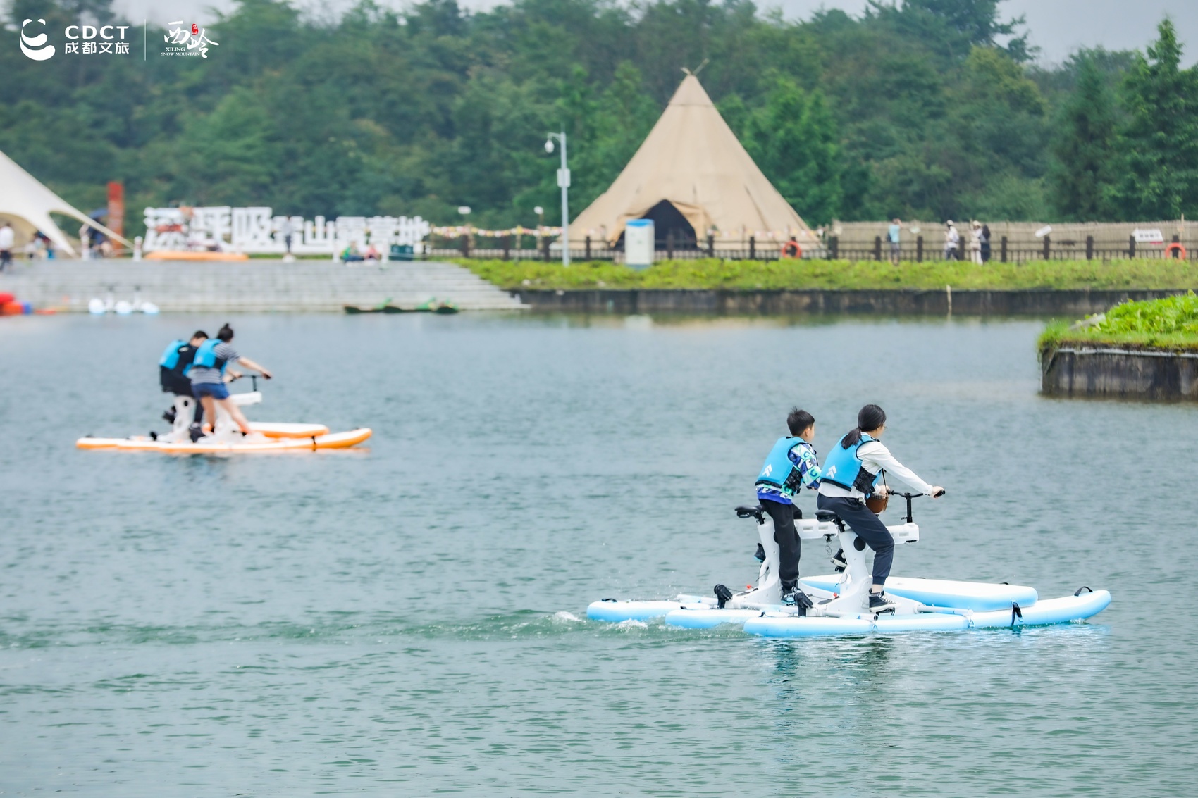 夏日花式玩水已成为热门主题,带娃出游怎么少得了玩水呢?西岭雪山景区新引进的皮划艇、桨板、竹叶舟、水上自行车成为景区玩水“出圈”项目。这类项目操作简单,入门快,游客很容易体验到乐趣,安全系数高,能让游客放心大胆下水游玩。据现场的游客表示:“现场的水上项目区别于陆地娱乐设施,有独特的魅力,更加清凉。以前映雪湖对我们来说只是一种在远处观赏的景色,但是现在我们可以下去玩耍,体会到贴近自然的快乐。”