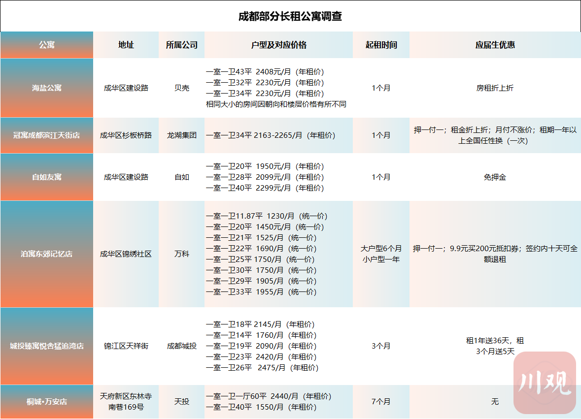 “长租公寓可拎包入住,特别适合我这种还在过渡期的毕业生,而且集中式长租公寓的品质也比较高,既方便,又安全。”四川大学文新学院毕业生孟小慧告诉记者。