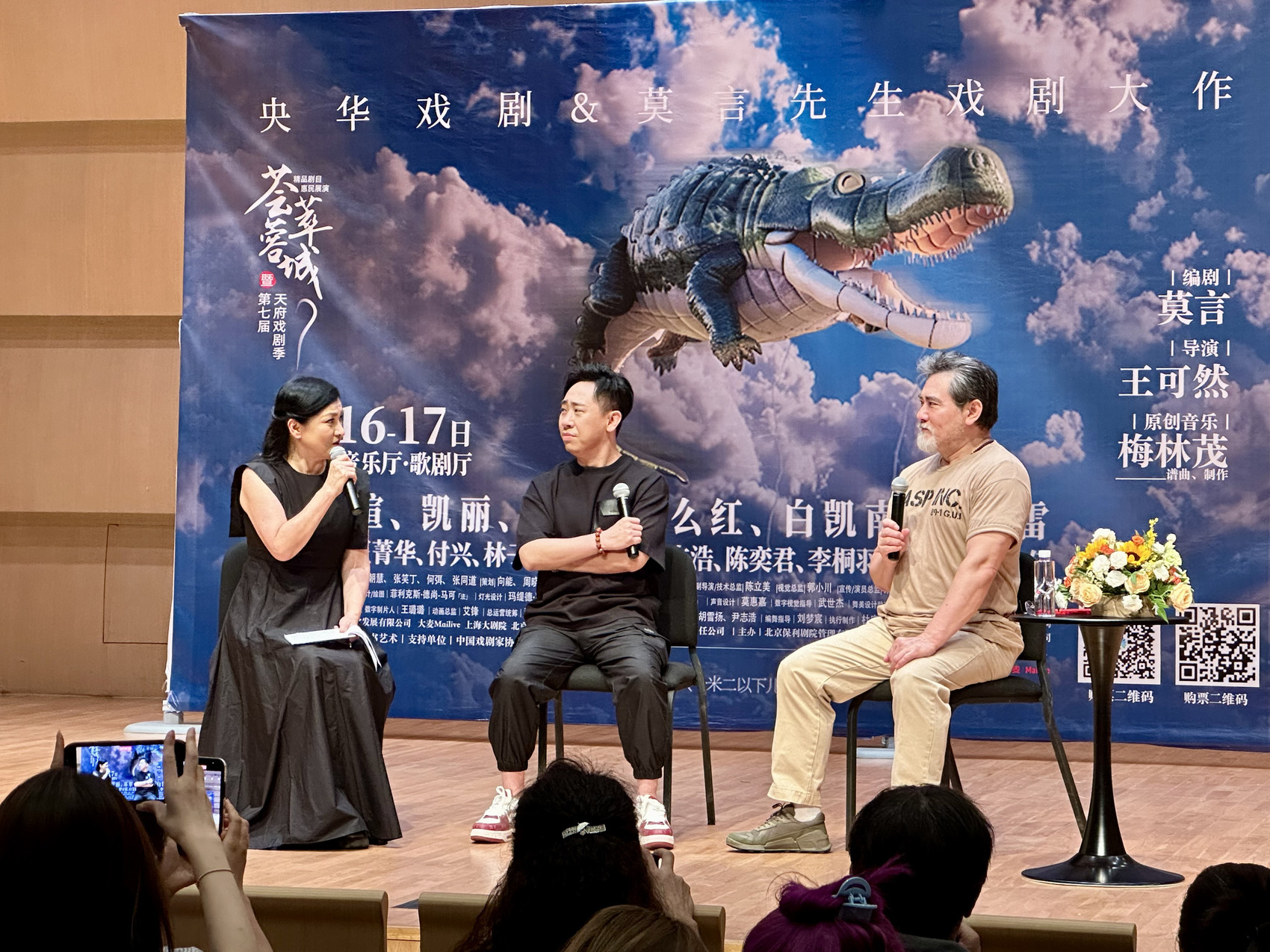8月14日,话剧《鳄鱼》剧组演员见面会在成都城市音乐厅举行,该剧主演赵文瑄、么红、白凯南来到现场,和观众分享《鳄鱼》创排的背后故事和演出感受。