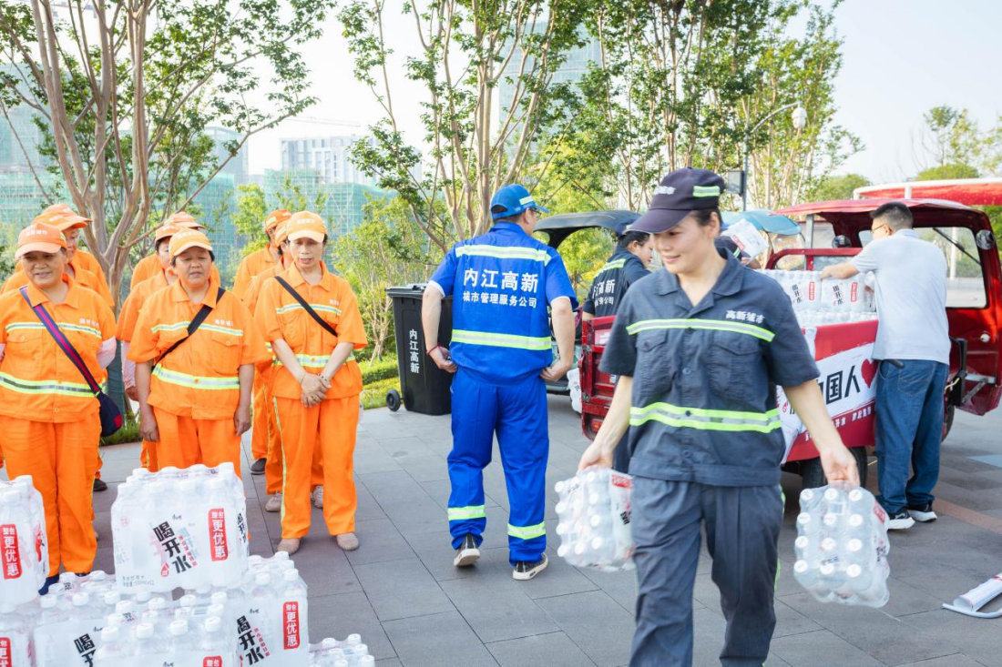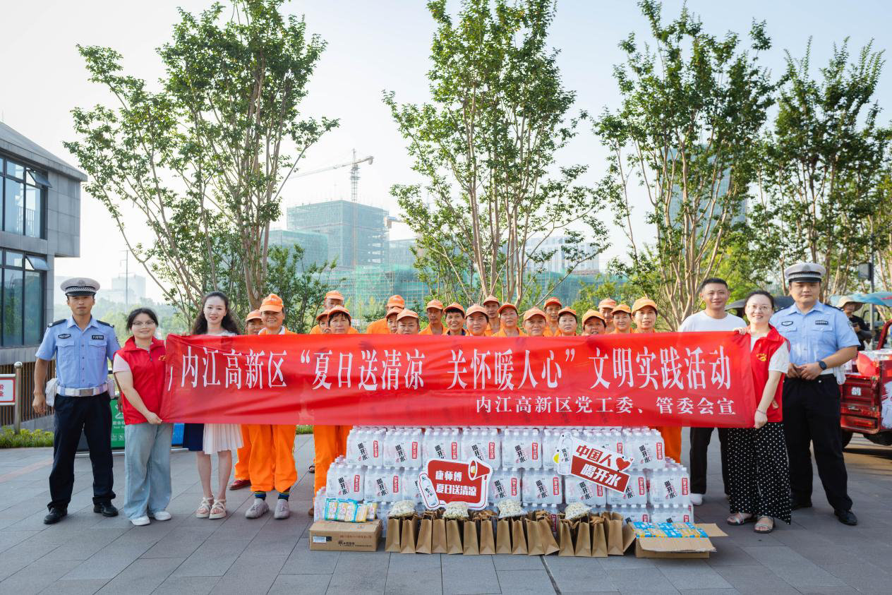 8月15日,内江高新区党群工作部联合内江市青年企业家协会、内江高新区新联会、内江第一城网站及爱心企业共同发起“夏日送清凉 关怀暖人心”活动,向辛勤奋战在高温下的一线工作者送上关怀与“清凉”。