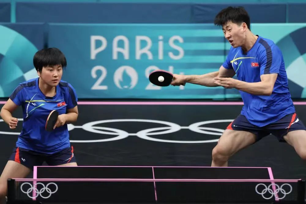 △ 本届奥运会,发球变化最多的朝鲜混双组合——李正植(右)/金琴英。新华社记者 刘续 摄